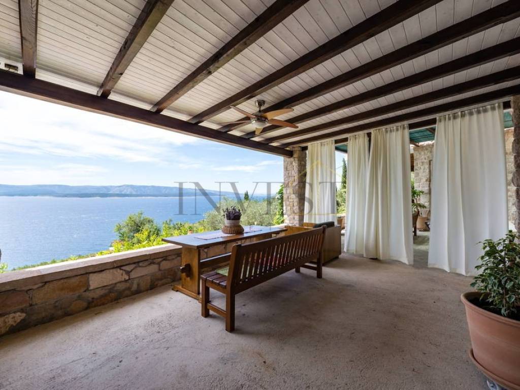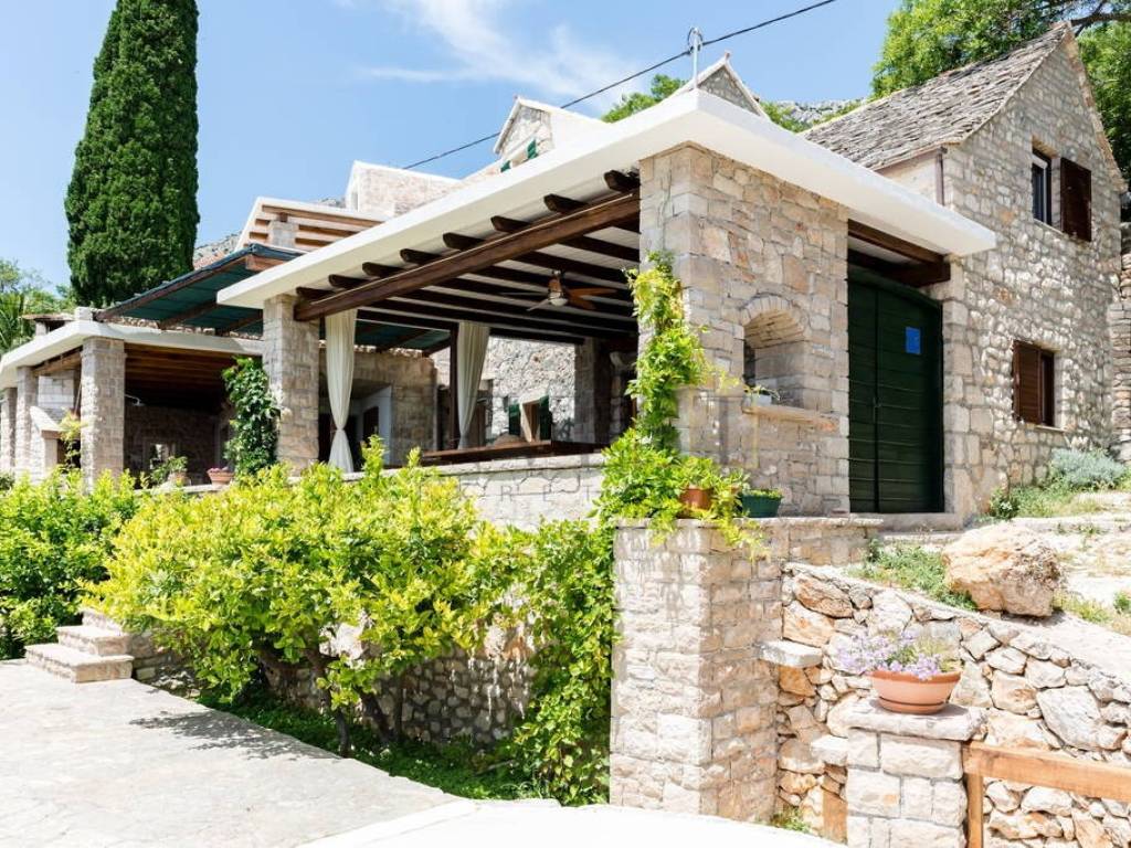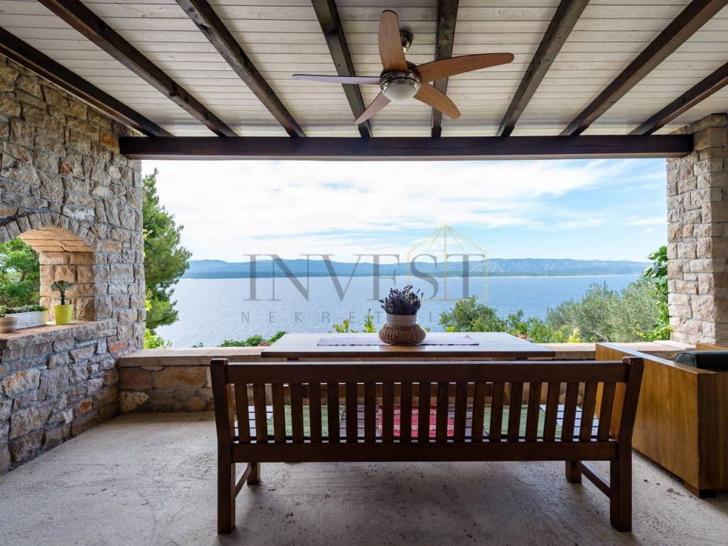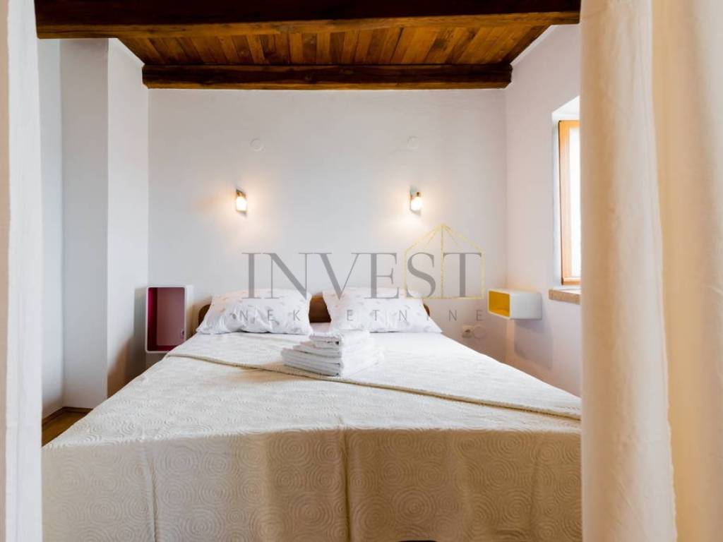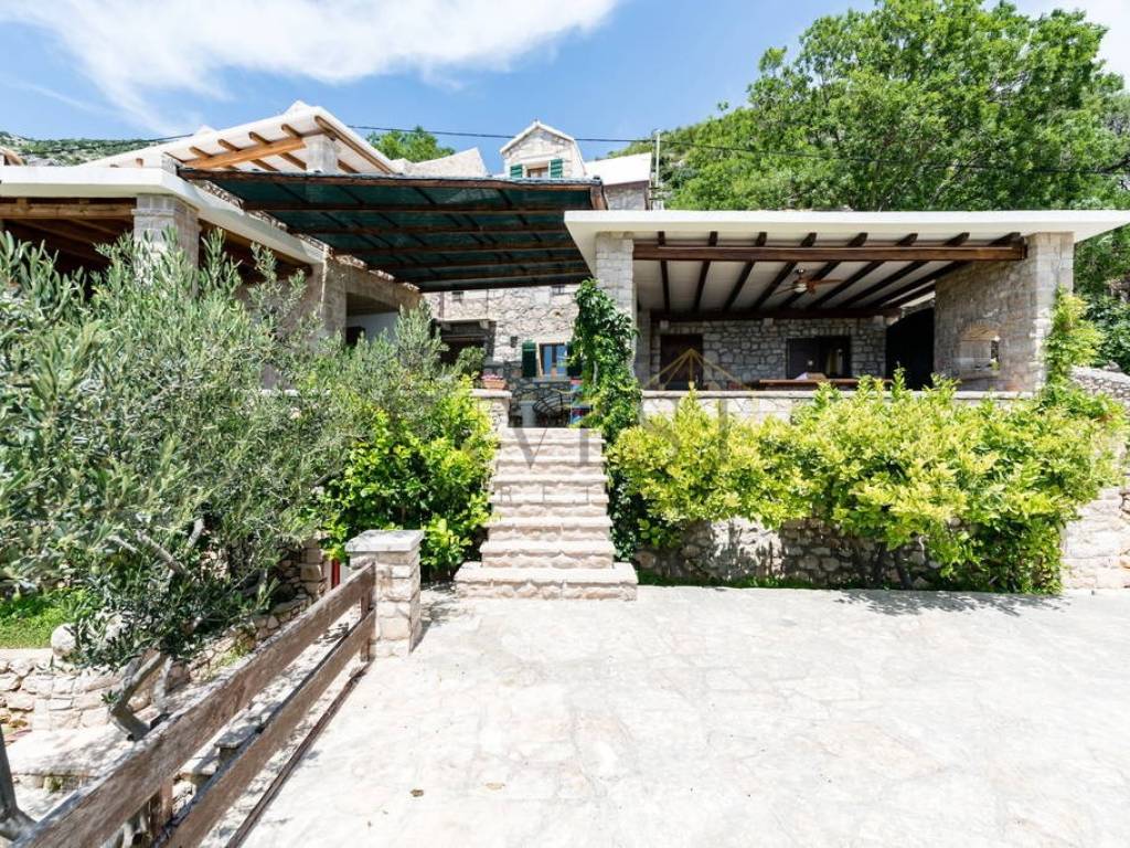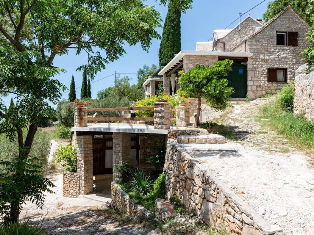 A unique stone house on three floors is for sale in Bol on the island of Brač. The property consists of a main house with a spacious living room, kitchen, dining room and bathroom on the first floor, two bedrooms and an additional bathroom on the second floor and a large bedroom with access to the terrace on the third floor. In addition to the main house, the property includes two duplex apartments with a kitchen, dining room and bathroom on the ground floor and a bedroom on the first floor, as well as two ground floor apartments with a kitchen, living room, dining room, bathroom and bedroom, one of which can be converted into an authentic Dalmatian tavern. The property has secured parking for up to five vehicles, all connections are available, all apartments are air-conditioned, and the main house on the first floor has underfloor heating. The location is extremely attractive, a walking path leads directly to the sea and one of the most beautiful beaches on the island, while the center of Bol is only a five-minute drive away, with restaurants, cafes and shops. This property is ideal for a family stay, but also as an investment for tourist rental, thanks to the diverse spaces and excellent location.