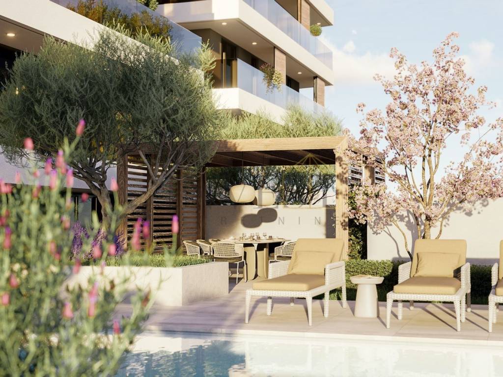 For sale is a ground floor apartment in a new building in Slatine on the island of Čiovo, located in the first row to the sea in an exclusive location, in a luxurious urban villa with a private swimming pool within the building. The property is located in a quiet environment with direct proximity to the beach, ideal for those looking for privacy, comfort and top quality living.