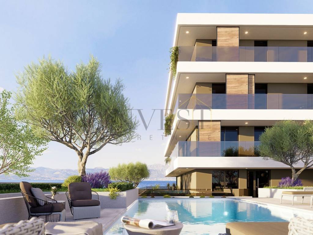 For sale is a ground floor apartment in a new building in Slatine on the island of Čiovo. It is located in the first row to the sea in an exclusive location in a luxurious urban building with a private swimming pool intended exclusively for residents. The property is located in a quiet environment with close proximity to the beach and is ideal for those looking for privacy, comfort and top quality living.
