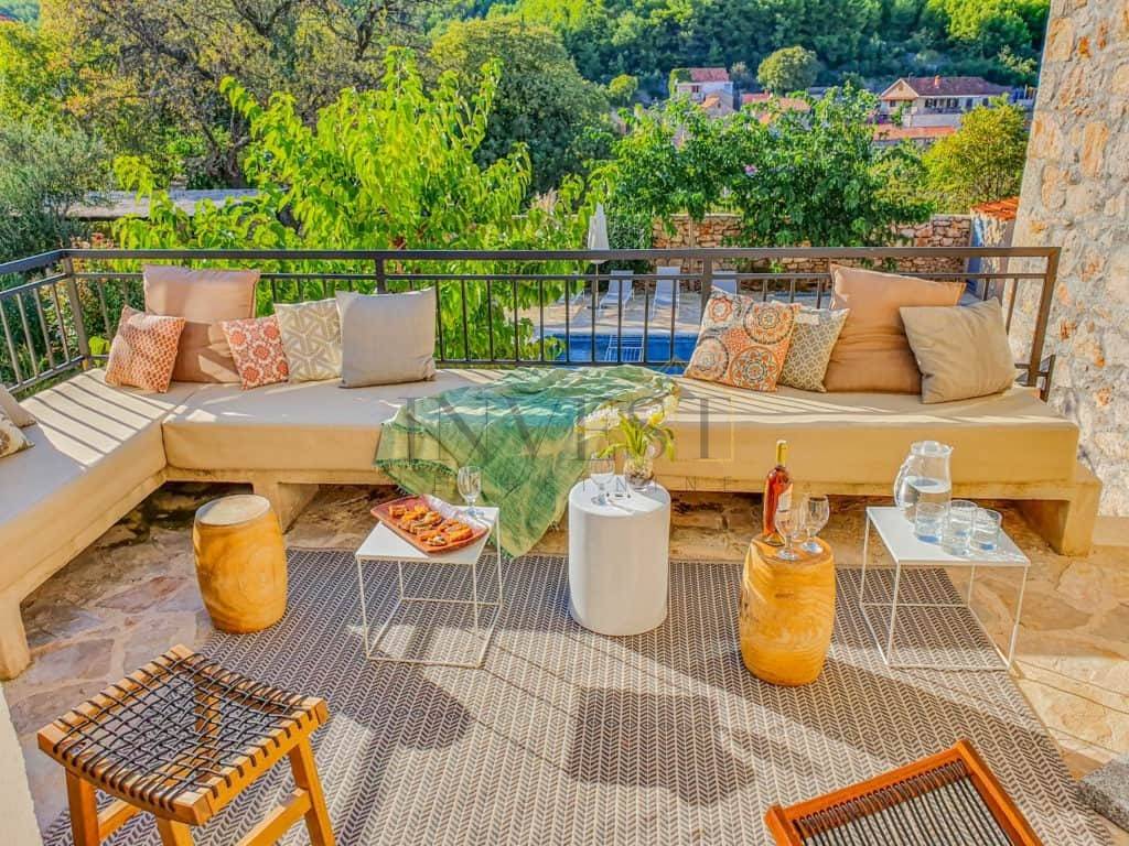 For sale is a luxurious traditional stone villa, located in a quiet part of the island of Hvar. This attractive property extends to approximately 240 m over three floors and offers five spacious bedrooms and four modern bathrooms, making it an ideal choice for buyers looking for a larger family home or an exceptionally high-quality investment for tourist rental. The villa stands out with a private swimming pool with a spacious sun terrace, a landscaped garden and a fully equipped outdoor kitchen with barbecue and a covered dining area. The interior of the house is characterized by bright spaces, a fully equipped open-plan kitchen, dining room and living room, and all bedrooms and the main living area are air-conditioned for maximum comfort.