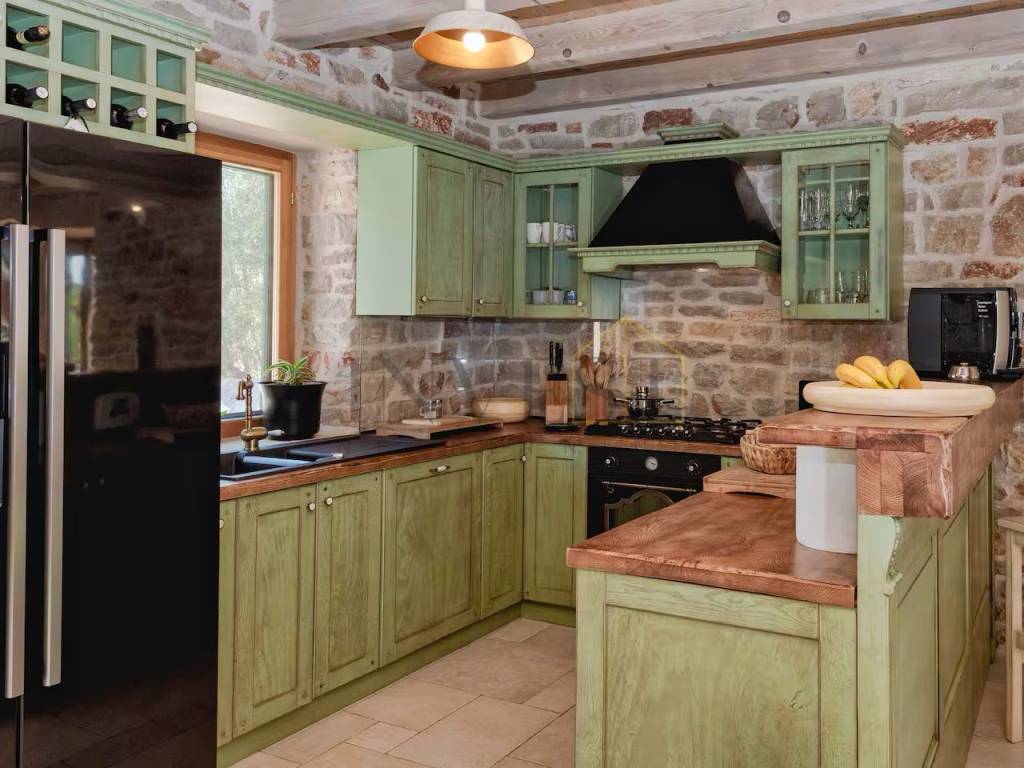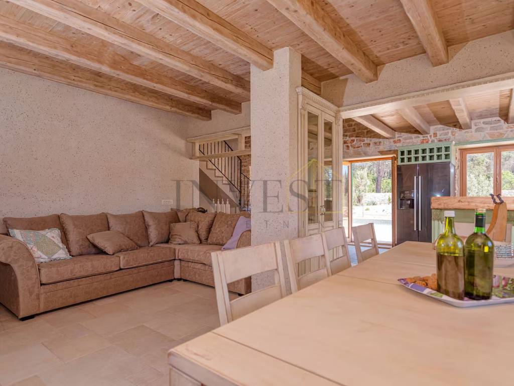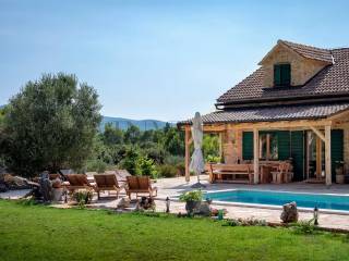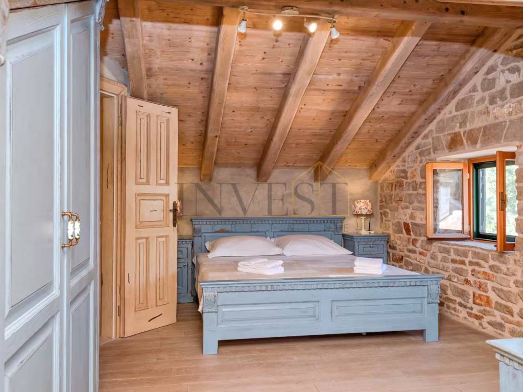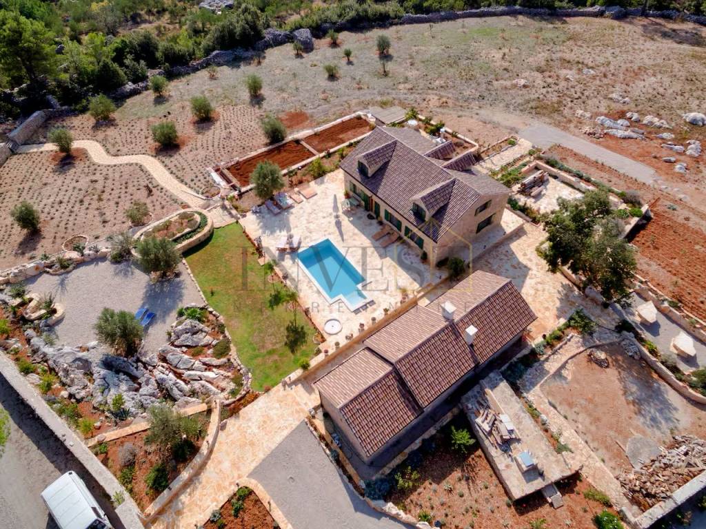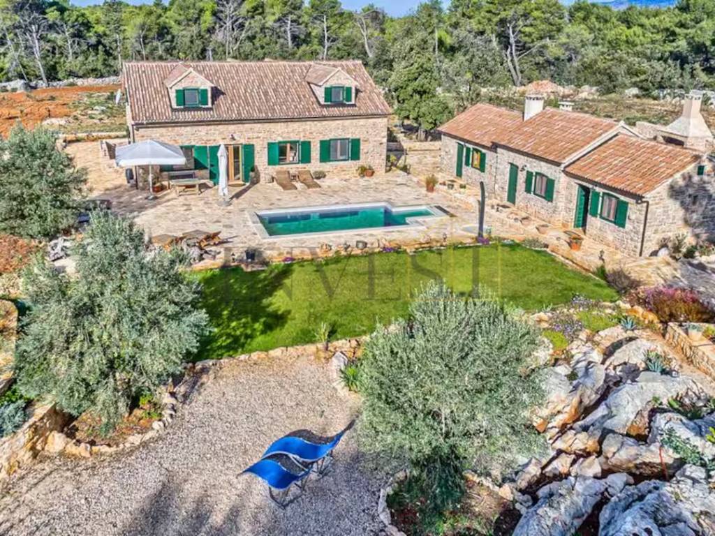 A stone villa for sale on the island of Hvar, situated in a quiet location surrounded by Mediterranean nature, on a plot of approximately 8,500 m. The property consists of a main house, three auxiliary buildings, a swimming pool and a landscaped garden.