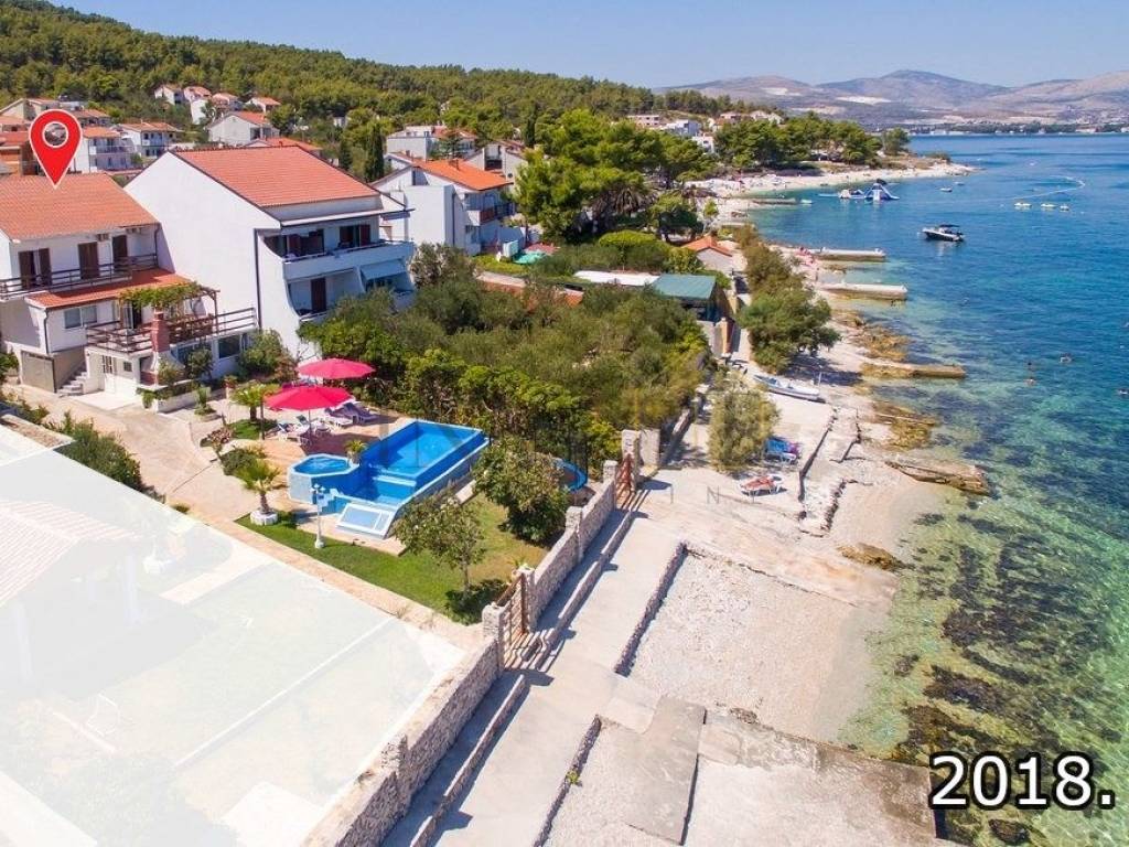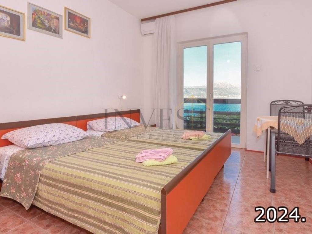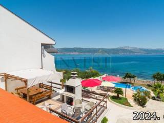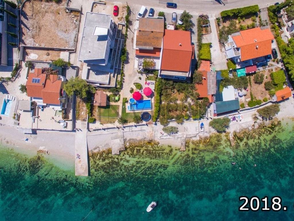 A unique opportunity to buy a house in Slatine on the island of Čiovo, with direct access to the pebble beach directly from the spacious yard. The house is spread over a plot of 800 m, with 260 m of living space, including spacious terraces, five bedrooms and one suite. There are a total of 12 beds, an additional 6 in the apartment, four bathrooms, two kitchens and a dining room for 12 people.
