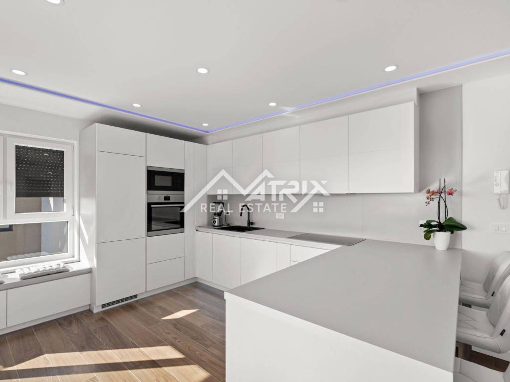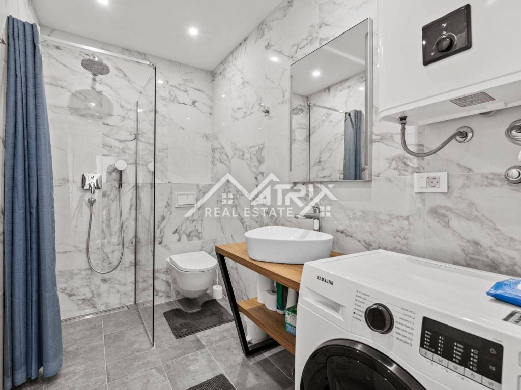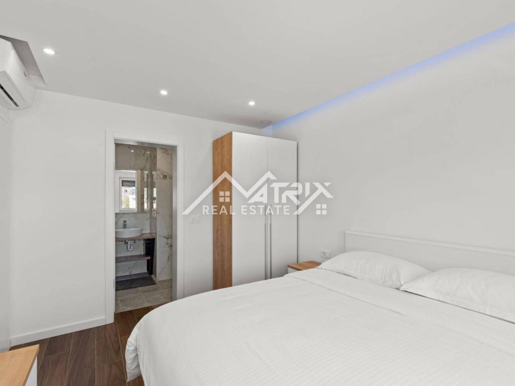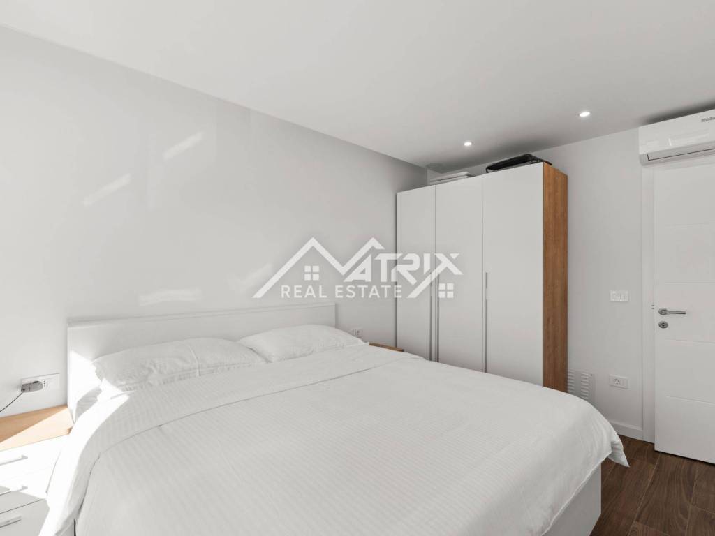 The apartment is fully modern and stylishly furnished and is being sold as such. For year-round comfort, there is underfloor electric heating, while each room is equipped with air conditioning units. High-quality PVC windows come with electric shutters for additional convenience and protection.