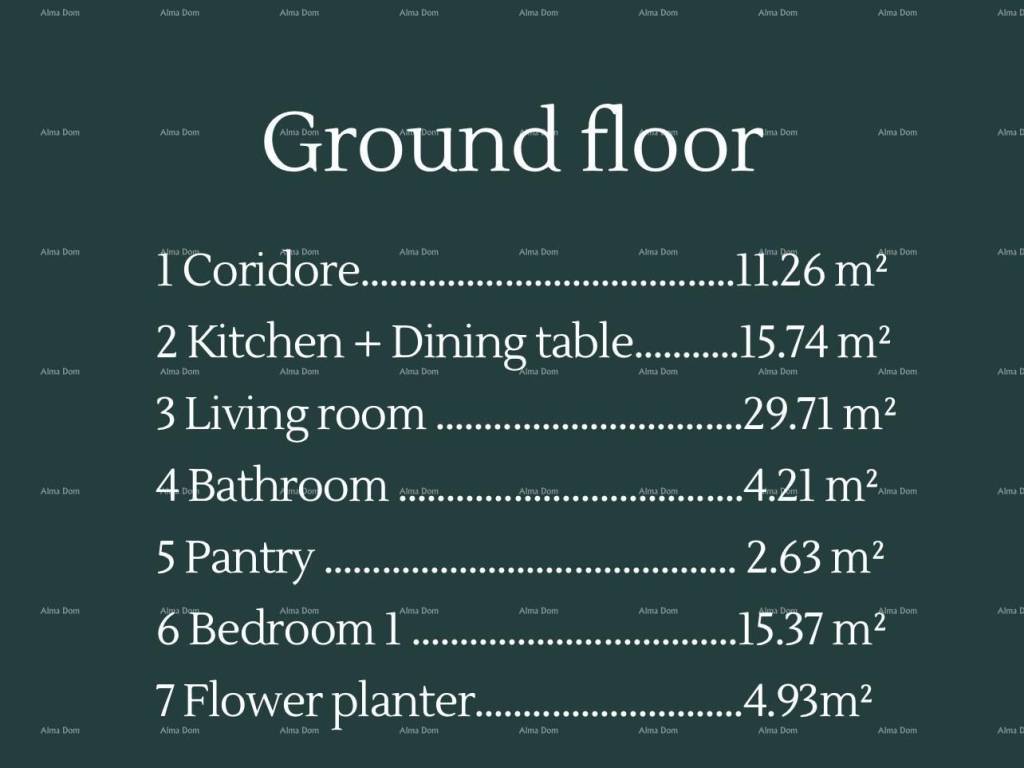 Villa B25, with a total area of 211.95 m2, consists of a ground floor and a first floor. On the ground floor, there is a hallway, living room, kitchen with dining room, bathroom, bedroom, pantry, and a green area for flowers.