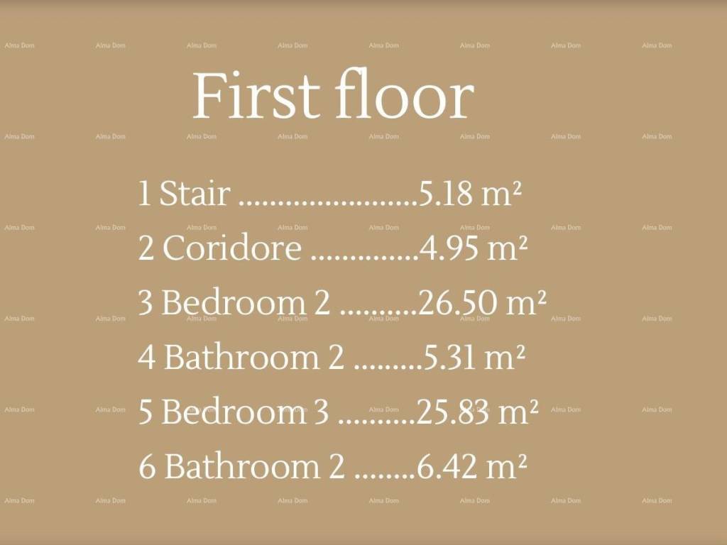Stairs access the first floor and it has a hallway, 2 bedrooms, 2 bathrooms, and a large covered terrace.