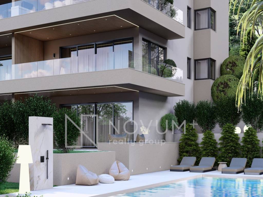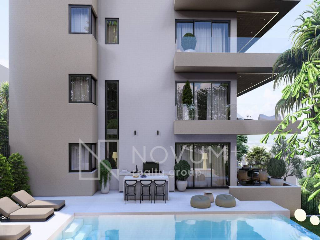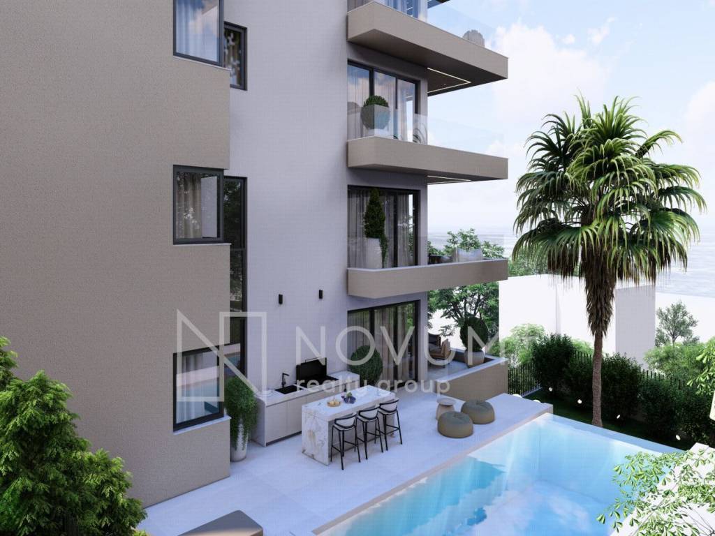 The residential building offers outstanding amenities that elevate the living experience. Owners of the two-story apartments on the ground floor will enjoy an outdoor swimming pools with sundecks each, while all residents will enjoy private parking, basement storage units and a modern staircase and elevator. Spacious south-facing terraces are designed to accommodate lounge furniture, creating the perfect spot to relax and admire the panoramic Adriatic views.