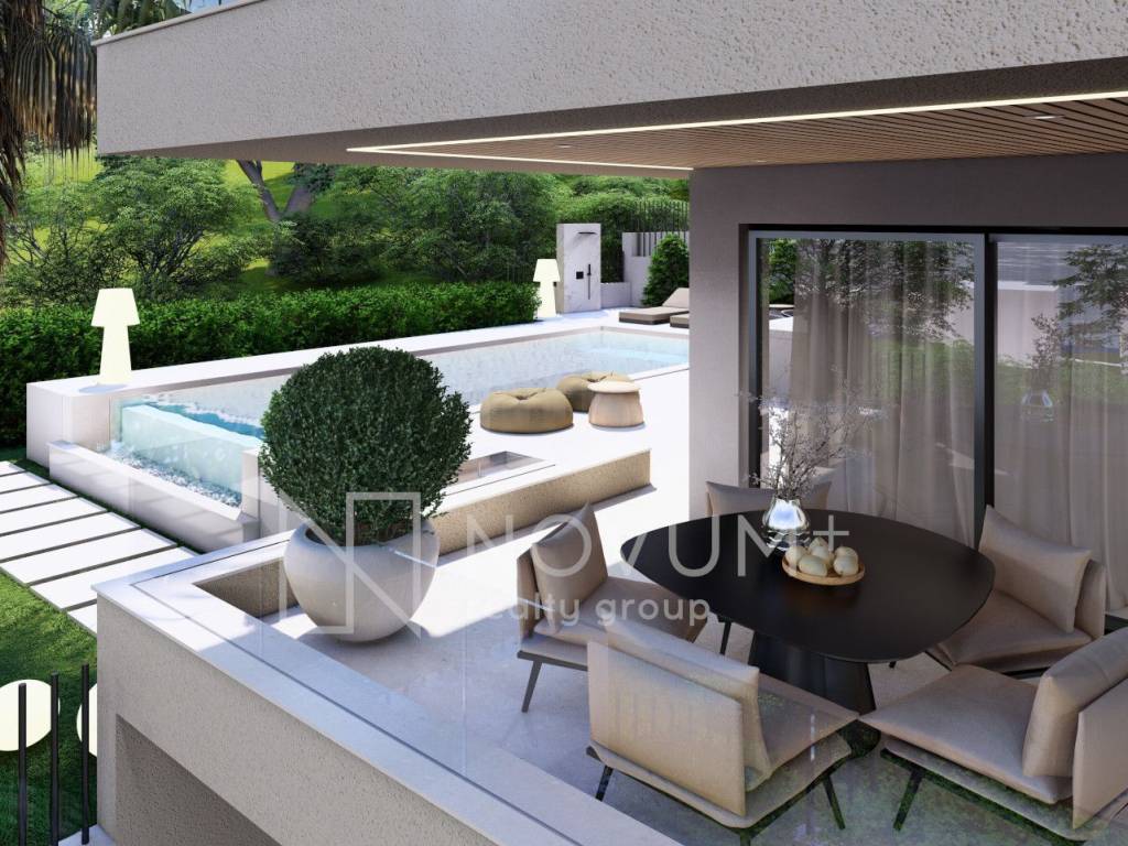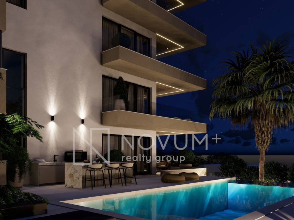 The residential building offers outstanding amenities that elevate the living experience. Owners of the two-story apartments on the ground floor will enjoy an outdoor swimming pools with sundecks each, while all residents will enjoy private parking, basement storage units and a modern staircase and elevator. Spacious south-facing terraces are designed to accommodate lounge furniture, creating the perfect spot to relax and admire the panoramic Adriatic views.