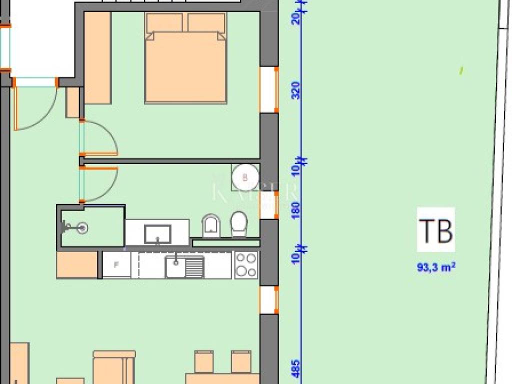 The apartment we offer has 66m2 + 31m2 of the apartment's associated space (2 parking spaces and storage) + 93m2 of garden (lawn). The property consists of 1 bedroom 12m2, a living room with a dining room 31m2, a bathroom 7m2 and a beautiful covered terrace 16m2 with a view of the sea. As for the furnishing of the apartment, the investor allows the buyer to choose the finishing materials. The heating of the apartment is planned with electric underfloor heating, and cooling with air conditioning, all included in the price of the apartment.