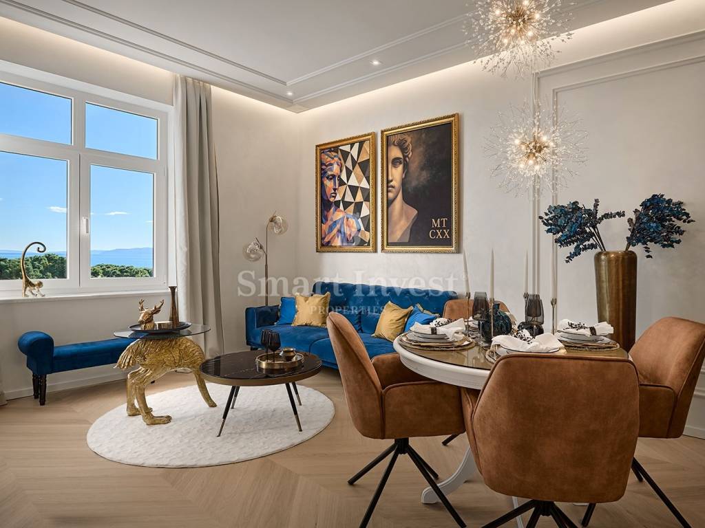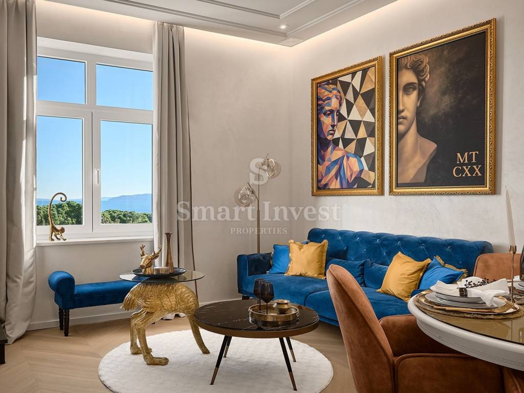 In the very heart of Opatija, just a few steps from the sea and the Lungomare promenade, is this completely renovated and luxuriously furnished duplex apartment the perfect haven for anyone who wants to live close to the beaches and enjoy the timeless charm that makes Opatija one of the most prestigious destinations on the Adriatic. The historic villa, the immediate proximity to the sea and the elegant interior create an ambiance that combines comfort, style and the Mediterranean rhythm of life.