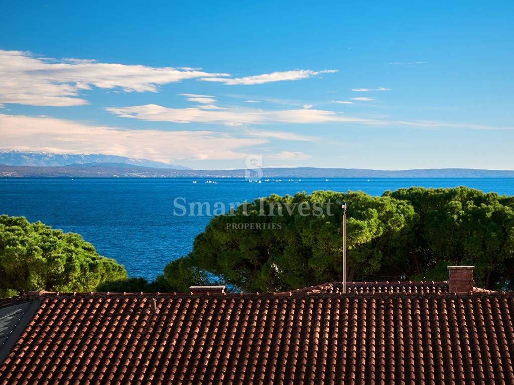 On the lower level you will find an entrance hall, a guest toilet and a spacious living room with a kitchen and dining room. Large windows open up to the blue sea and greenery, creating that recognizable Opatija atmosphere calm, sleek and refined.
