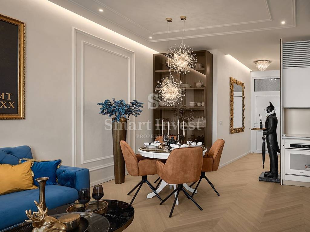 The apartment is completely renovated, luxuriously furnished and equipped with state-of-the-art technology.