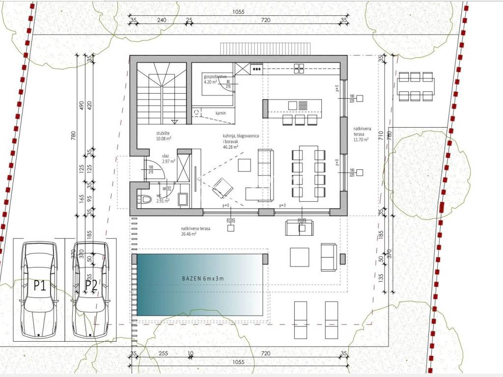 A detached house-villa with a surface area of 121.35 m2 is for sale, located in a quiet part of Sukošan, built in 2026. This property stands out with modern architecture and a carefully designed layout, providing a high level of comfort and privacy. The house is situated on a plot of 405 m2, and its southwest orientation allows for plenty of natural light throughout the day.