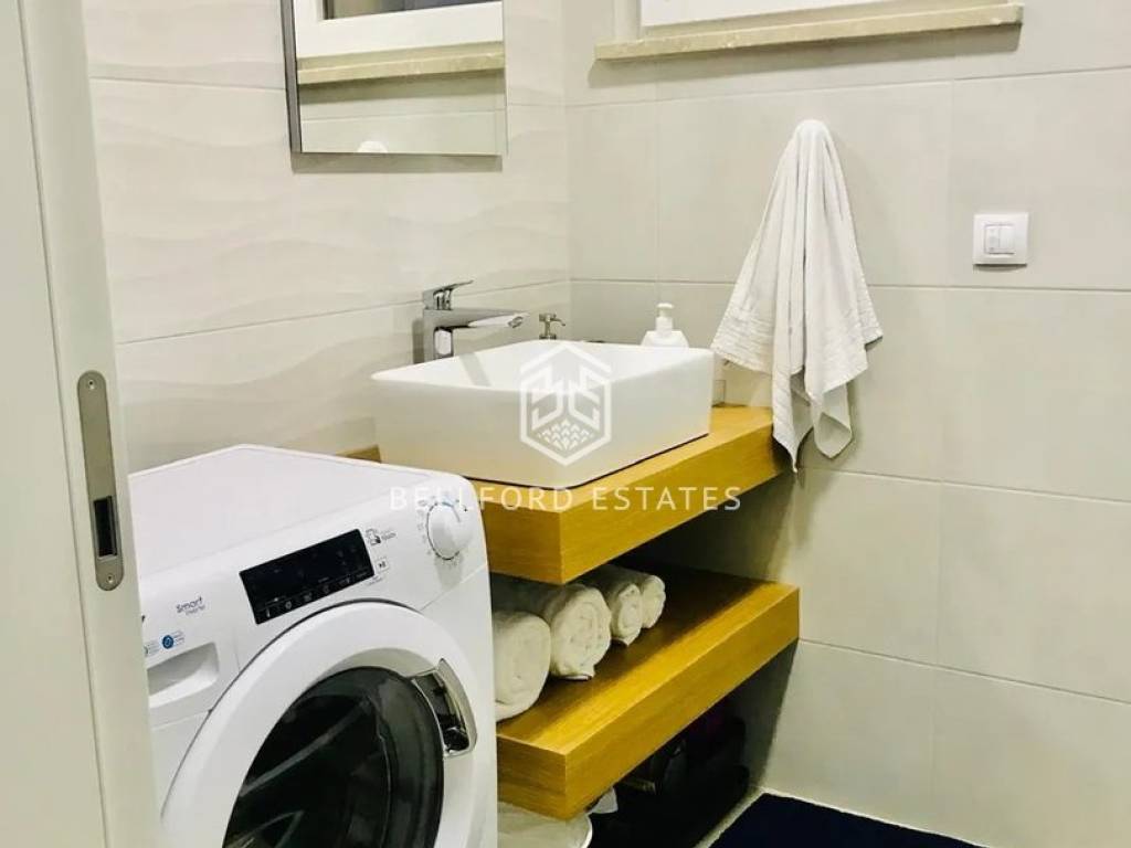 Smješten na prvom katu s pogledom na more s prostranog balkona koji se proteže oko stana. Uključuje dvije potpuno opremljene kupaonice, od kojih je jedna en suite.