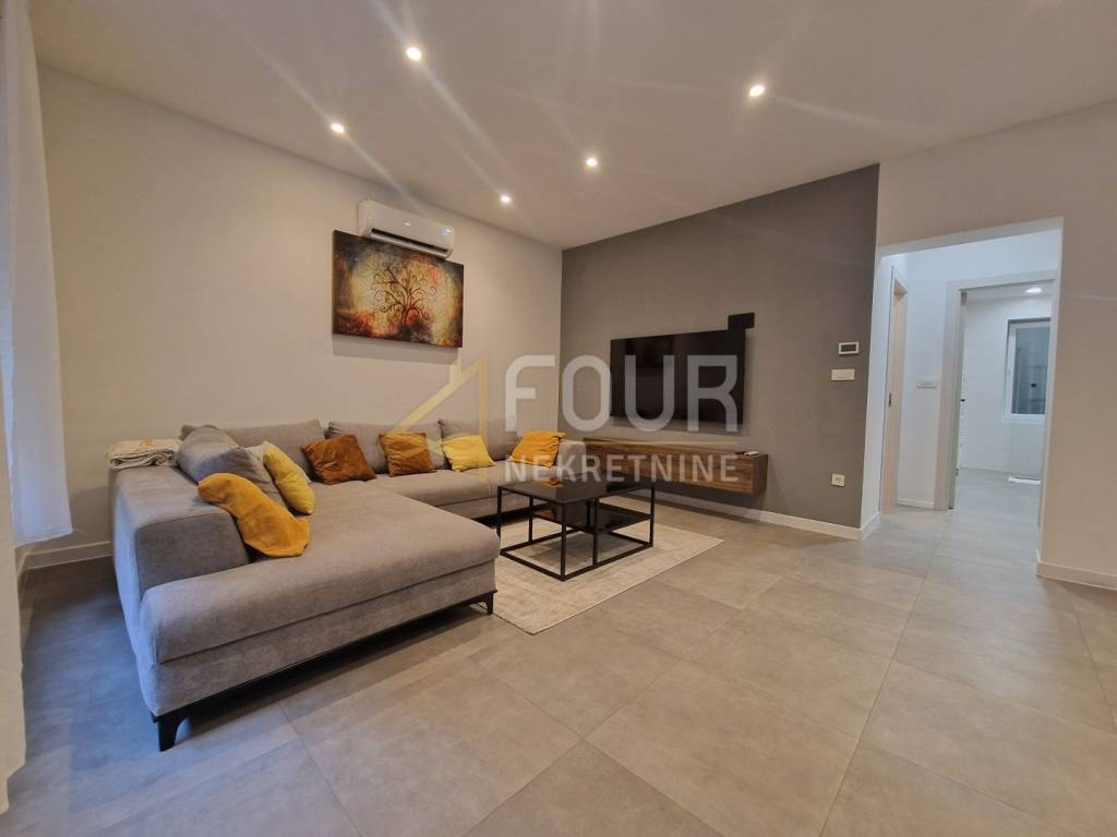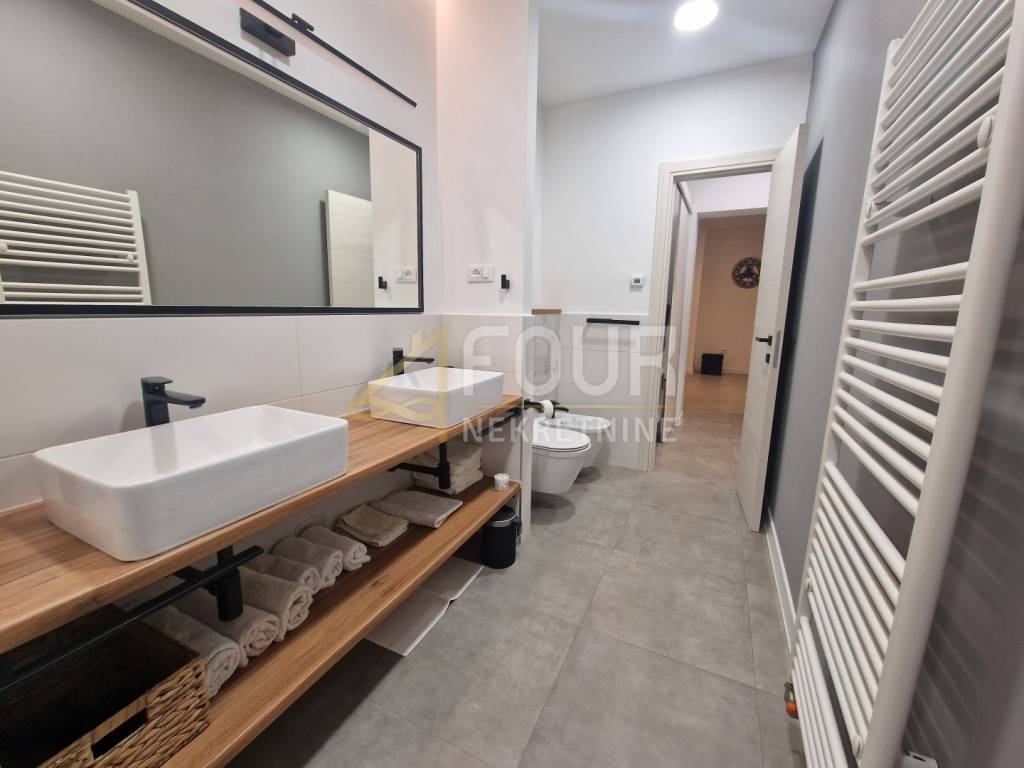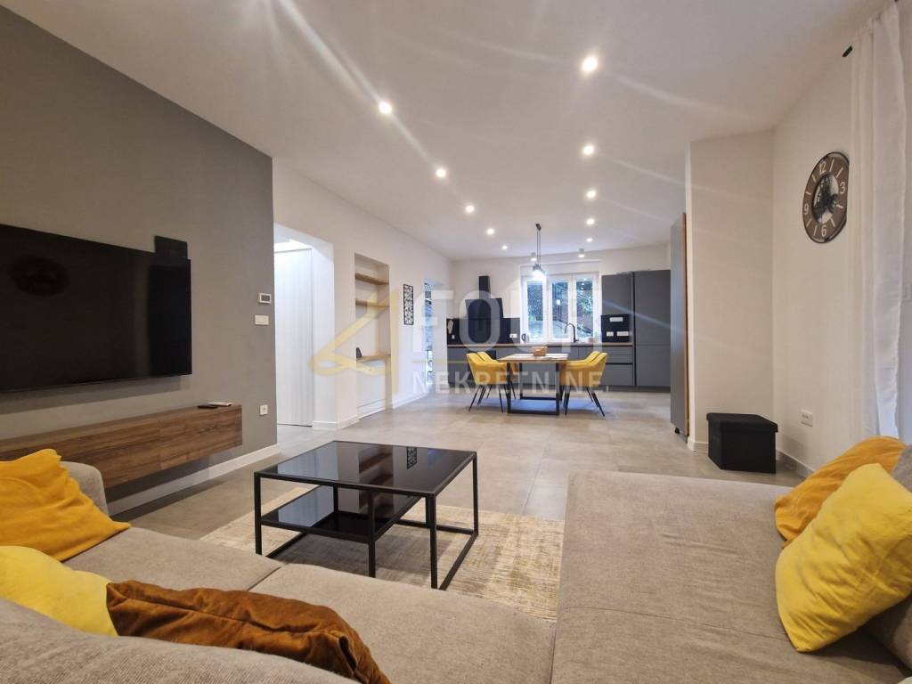 A modern and fully furnished apartment of 83.16m2 is available for rent in Belvedere, with a separate entrance. The apartment is completely newly adapted and offers a high level of comfort and functionality. It consists of an entrance hallway, kitchen with dining area, and living room in an open space, two bedrooms, one of which has a walk-in closet, a bathroom, a toilet, and a storage room. The heating is gas underfloor heating throughout the apartment, with additional air conditioning, and each room has its own thermostat for individual temperature regulation. Electric shutters are also installed. The apartment comes with a woodshed outside, and there is a possibility of placing a table and chairs in front of the entrance to create a small relaxation area. The apartment is ready for immediate occupancy and represents an excellent opportunity for those looking for a modern and well-furnished home near the center of Rijeka! Dear clients, agency commission is charged in accordance with the General Terms and Conditions of business.