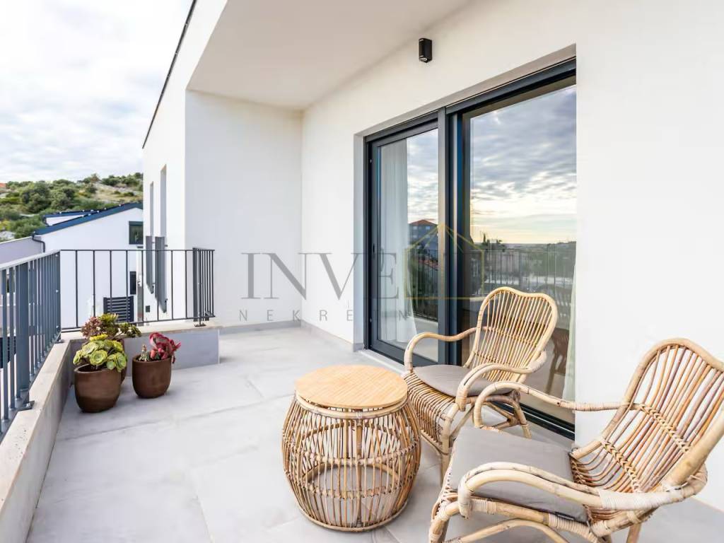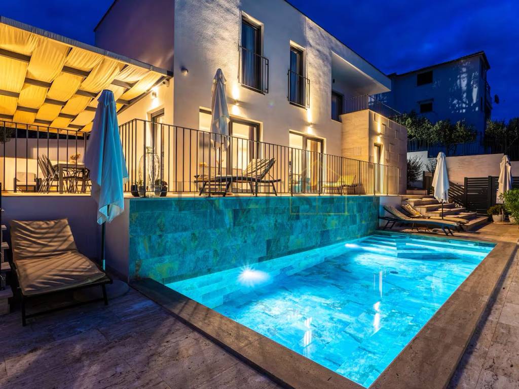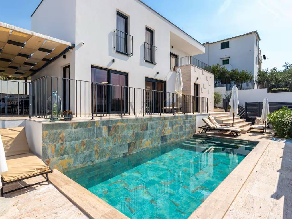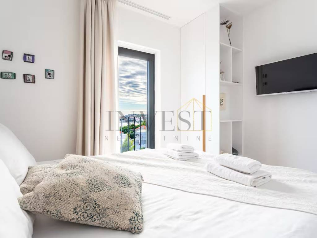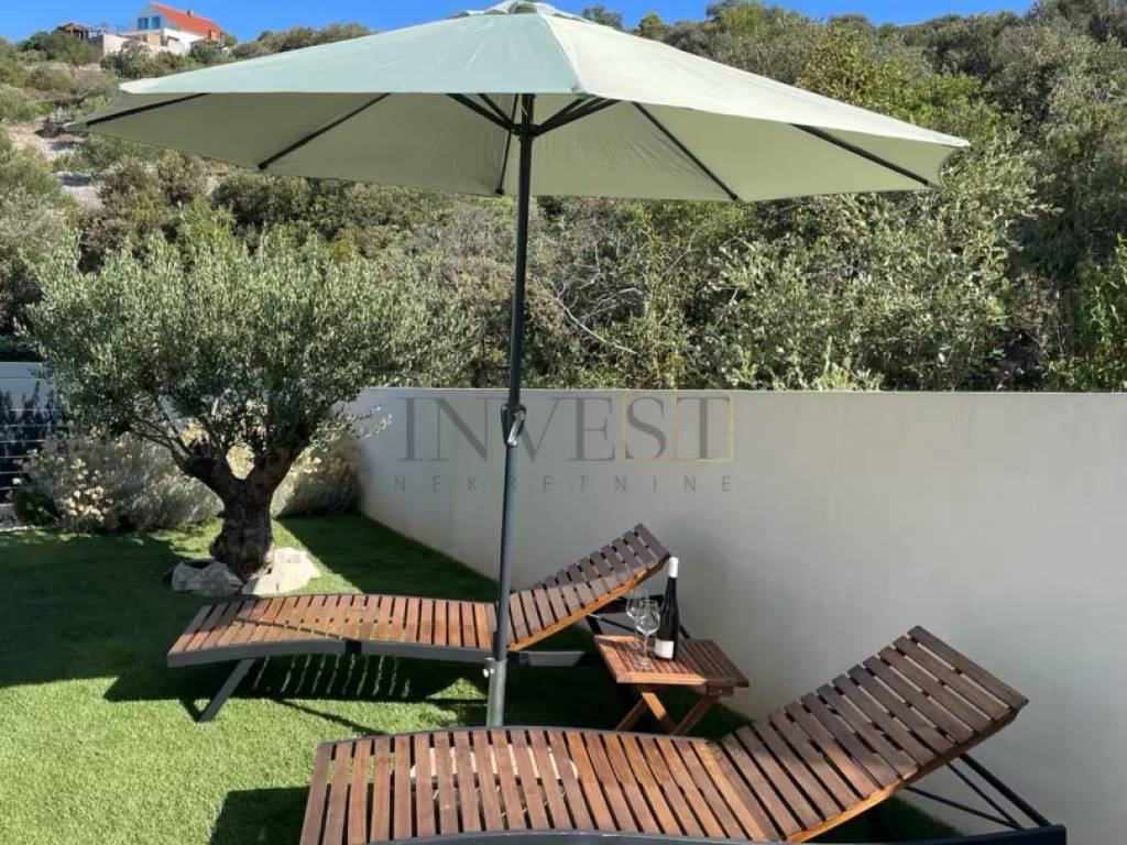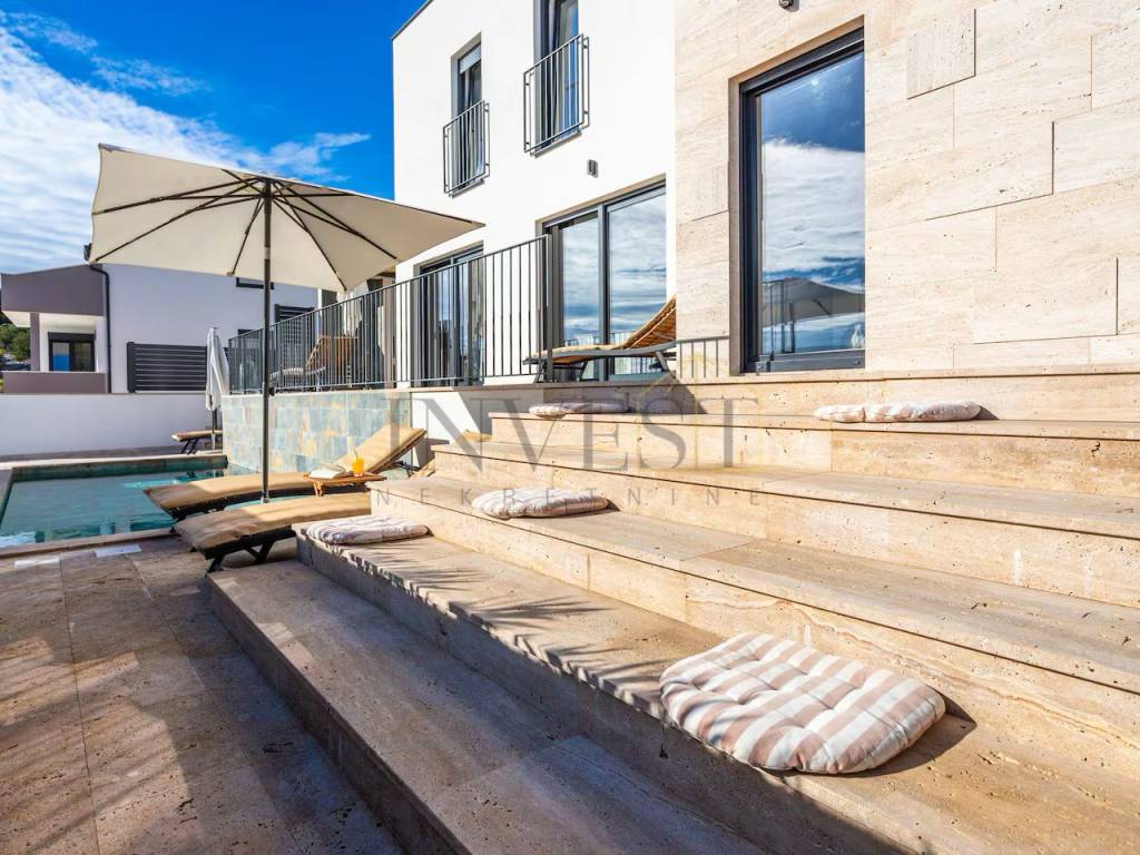A newly built luxury villa is for sale located in a quiet and attractive tourist resort in the heart of Dalmatia, just 100 meters from the sea. The property is spread over two floors with a total of 151 m of living space, located on a plot of land of 470 m.