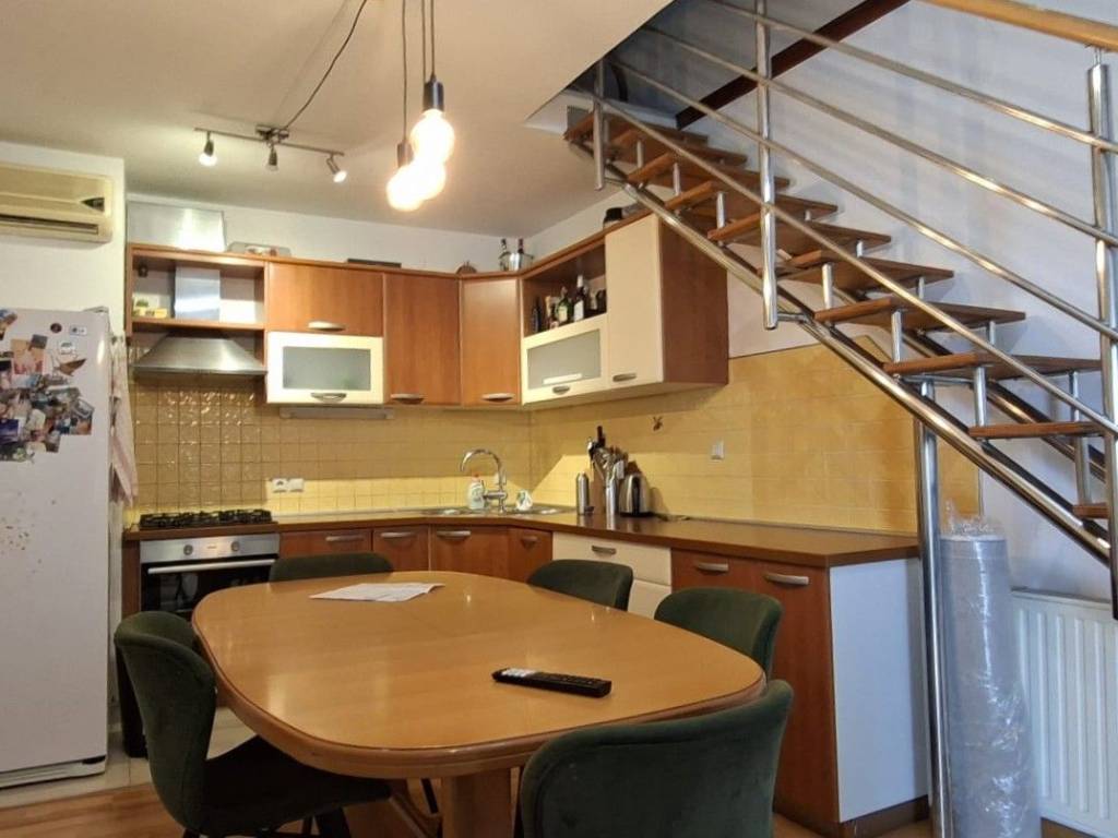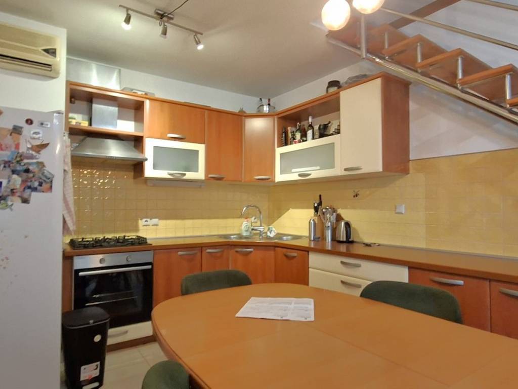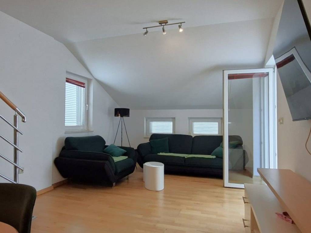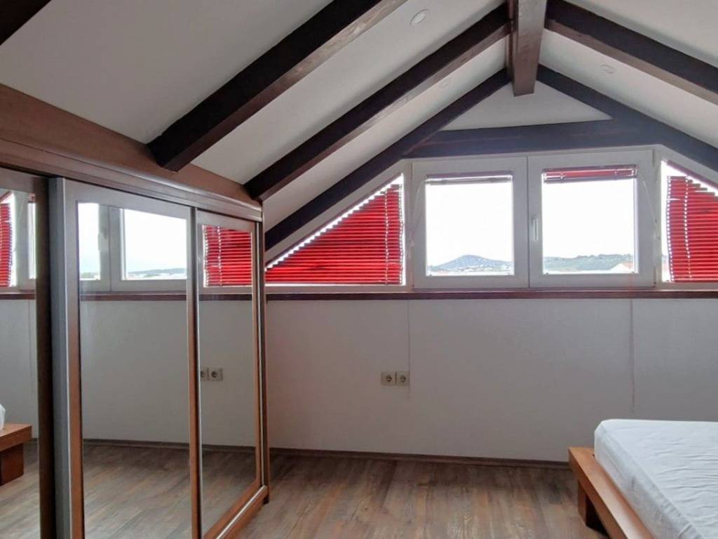 The apartment is arranged over two levels attic and upper floor, with a well-designed and functional layout: First level: Entrance hallway Bathroom Bedroom Kitchen with dining area Living room with access to a terrace Second level: Two bedrooms Additional room (currently used as storage) originally a WC, with all installations preserved, allowing easy conversion back into an additional toilet if desired The apartment is well maintained and move-in ready, with the possibility of modernization according to the buyers preferences.
