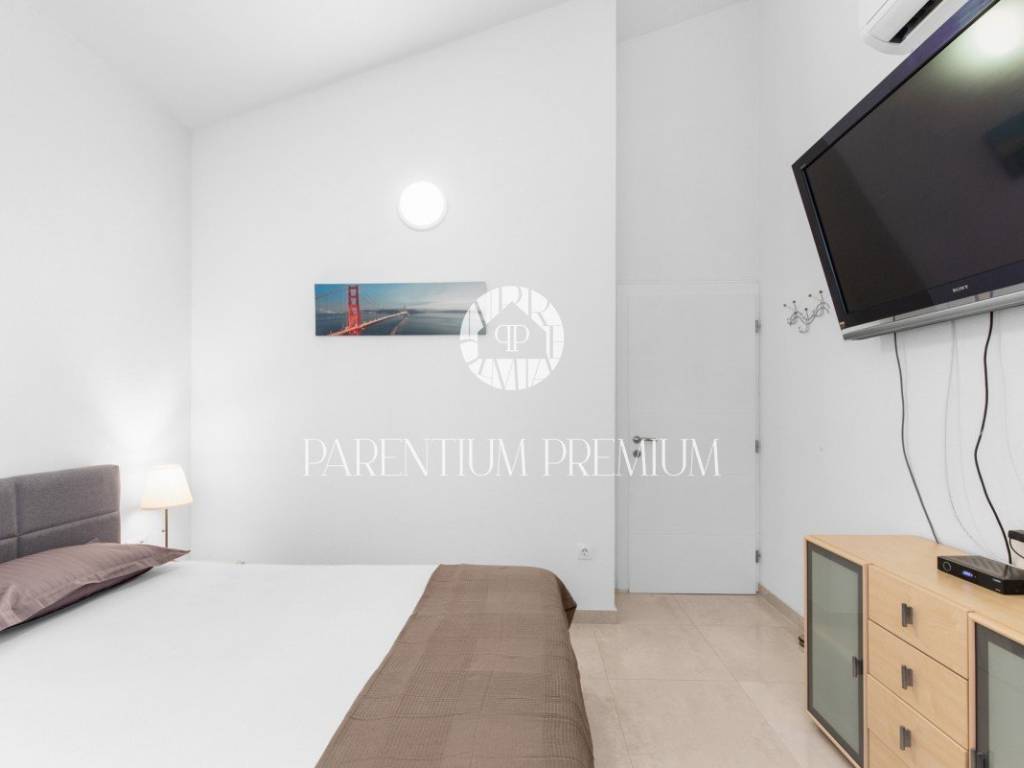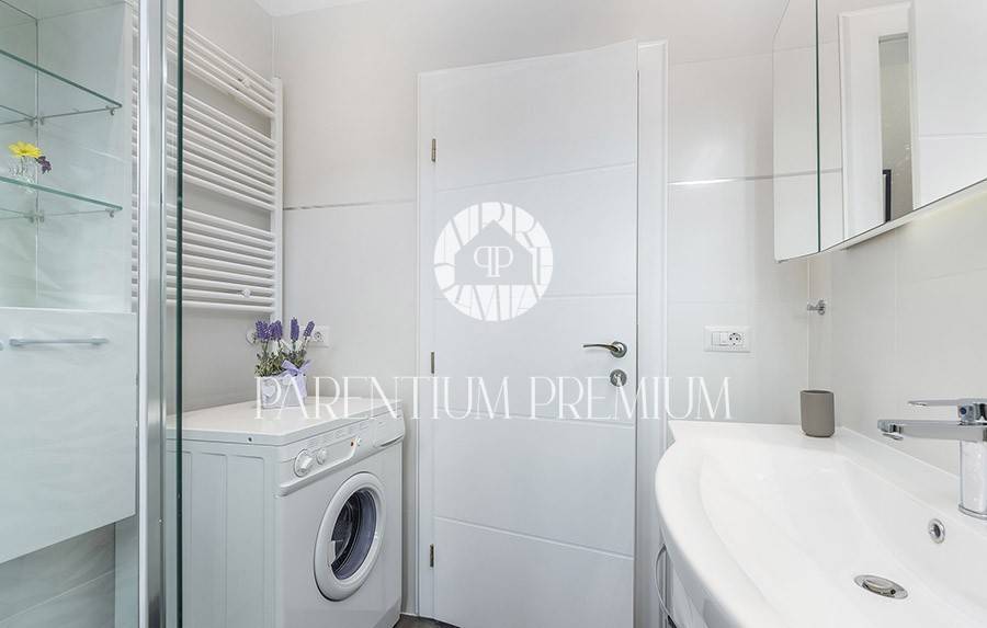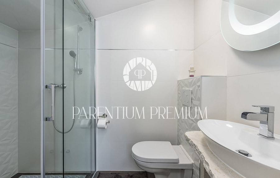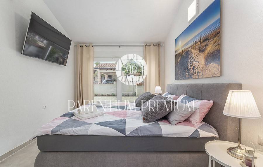 In the yard there is a heated pool of 29 m2 with salt water, which has hydromassage jets and a waterfall, automatic irrigation and video monitoring, and 2 parking spaces.