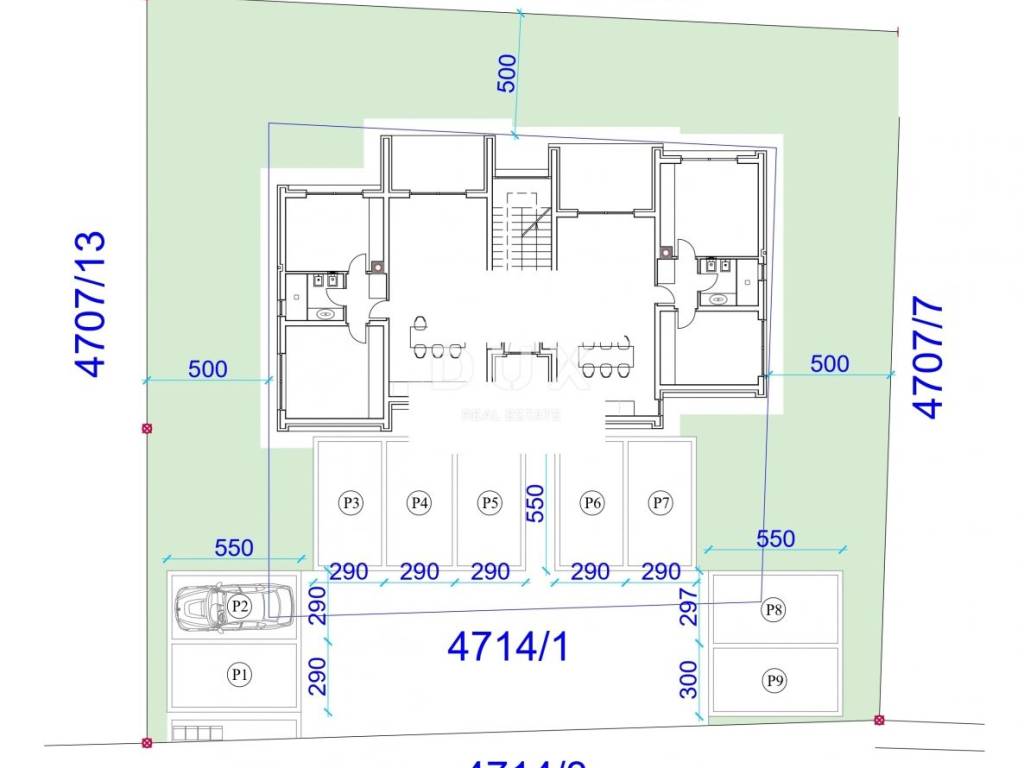 In the vicinity of Umag, only 2 km from the city center and the sea, an attractive building plot of 800 m is for sale with a valid building permit for the construction of a residential building with 6 two-bedroom apartments.