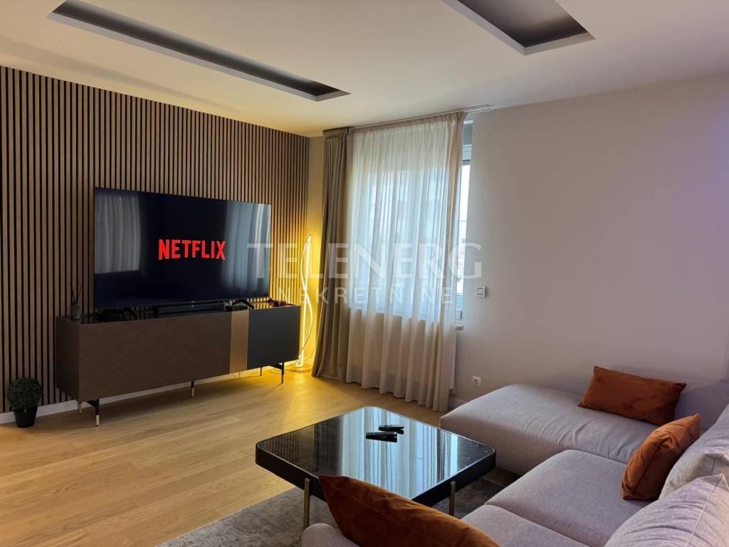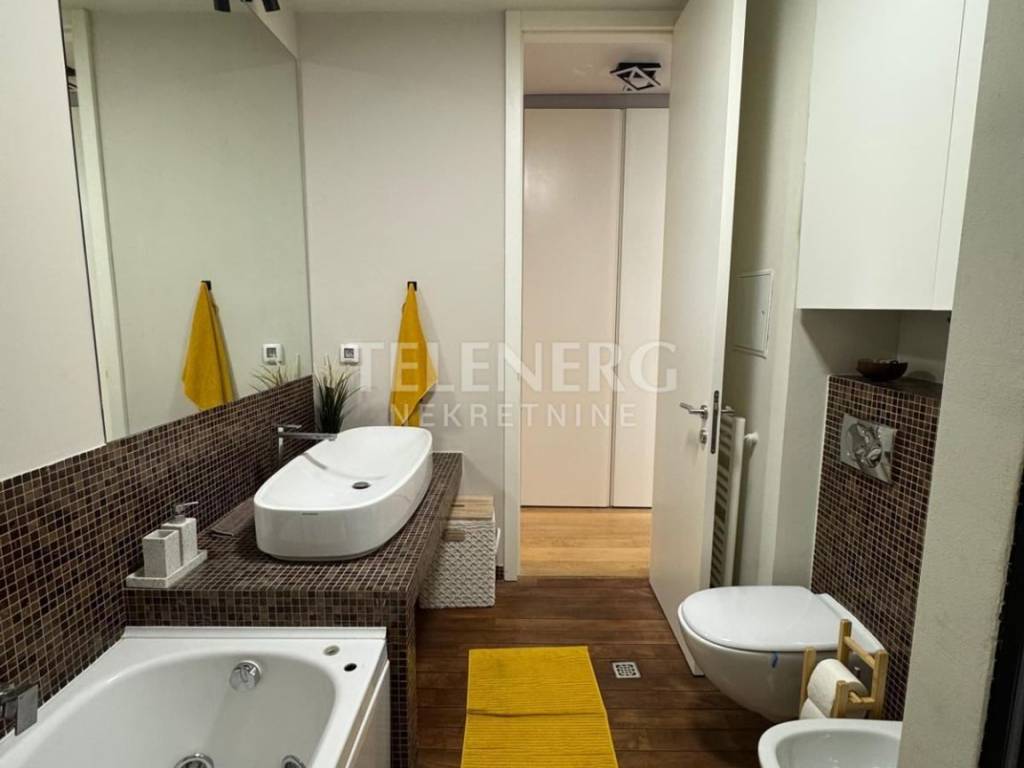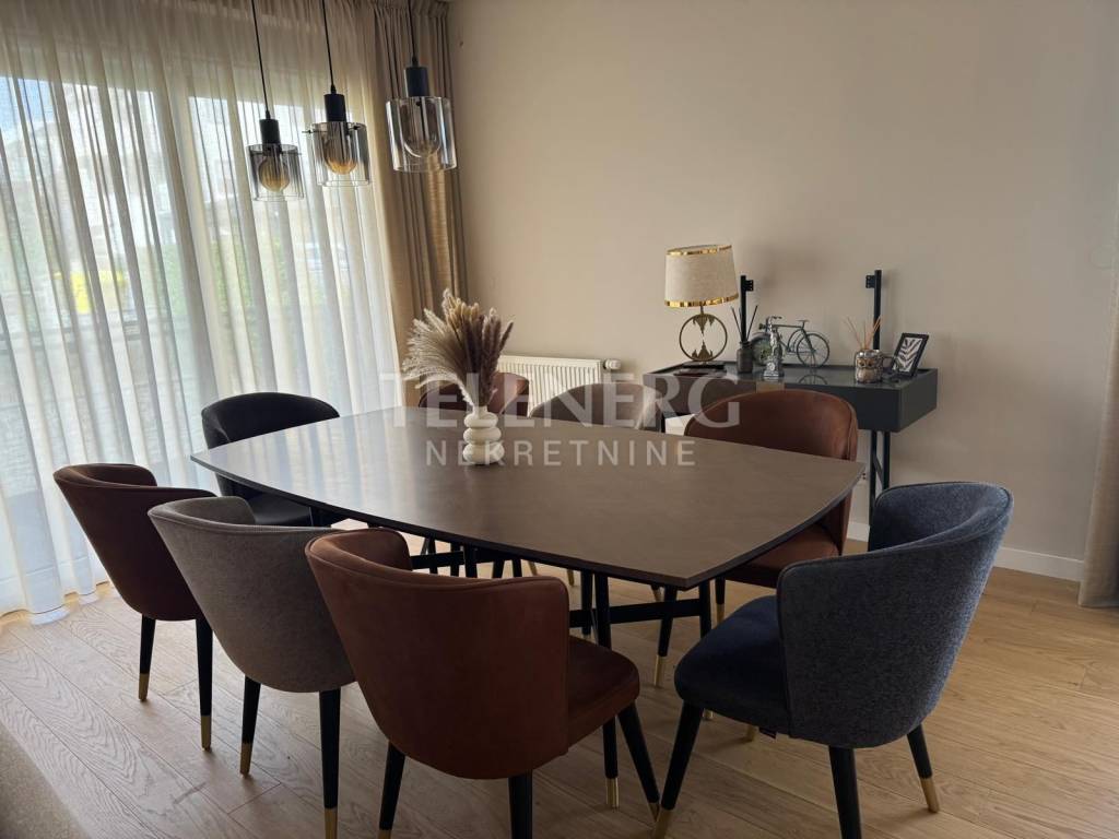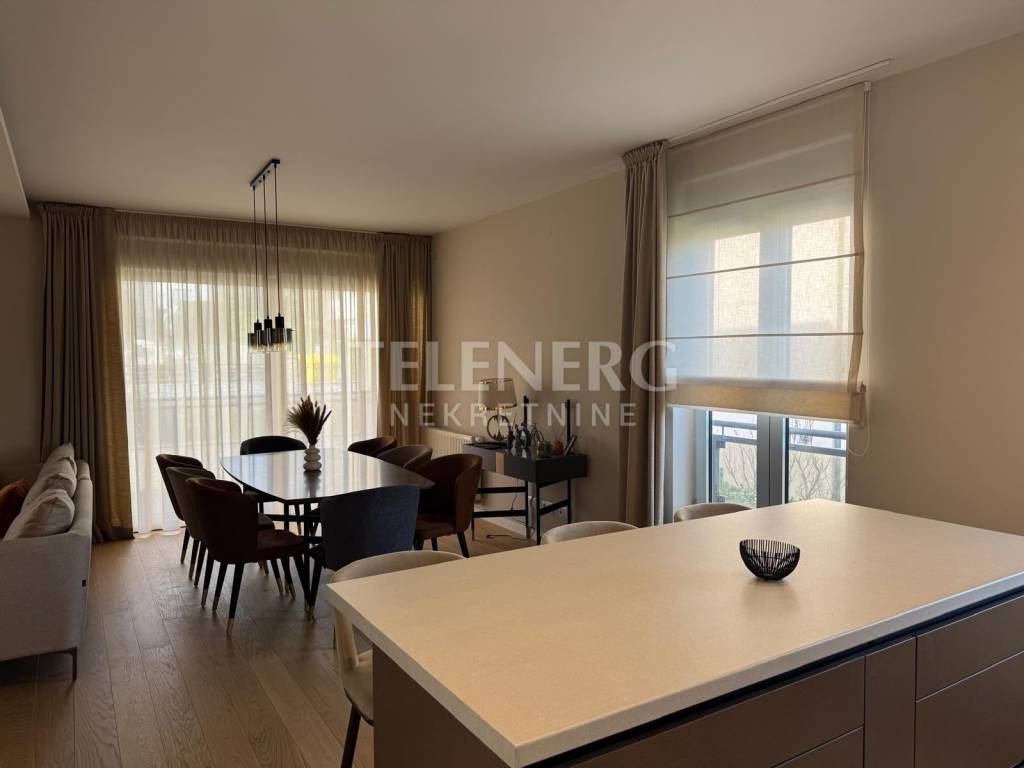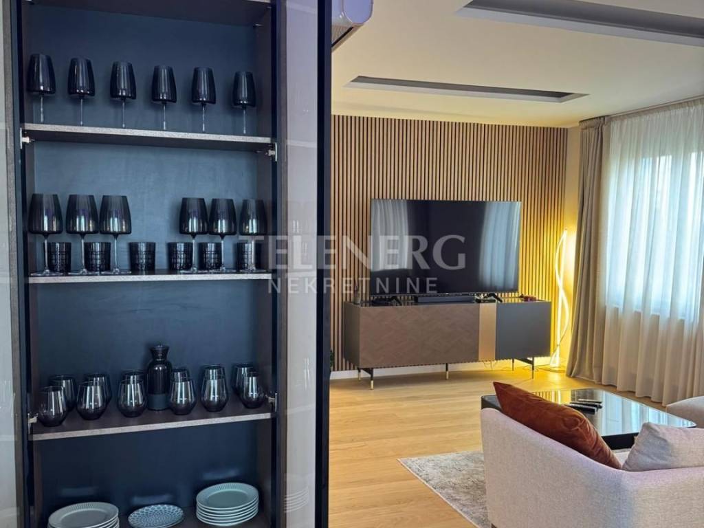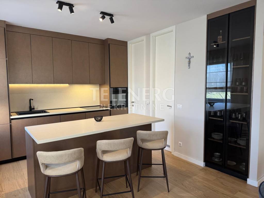 The apartment is fully furnished with all custom furniture, and contains a fully equipped kitchen with dishes, all custom made. In the basement of the building there is an equipped gym! The apartment also has a furnished storage room of 10 m2.