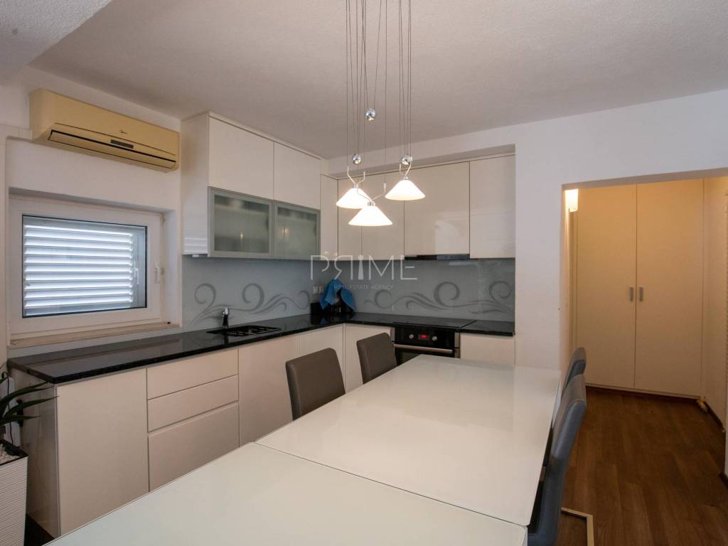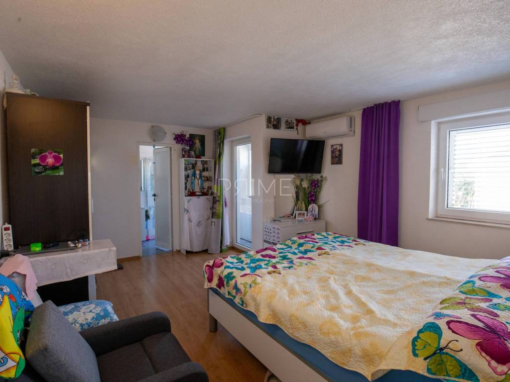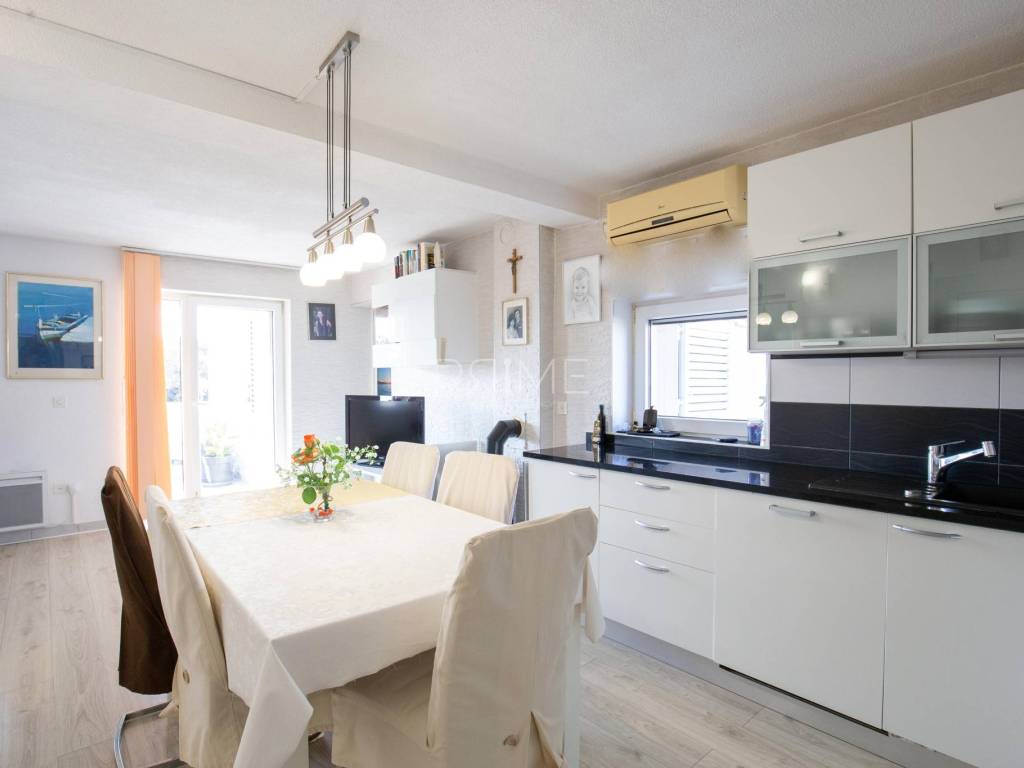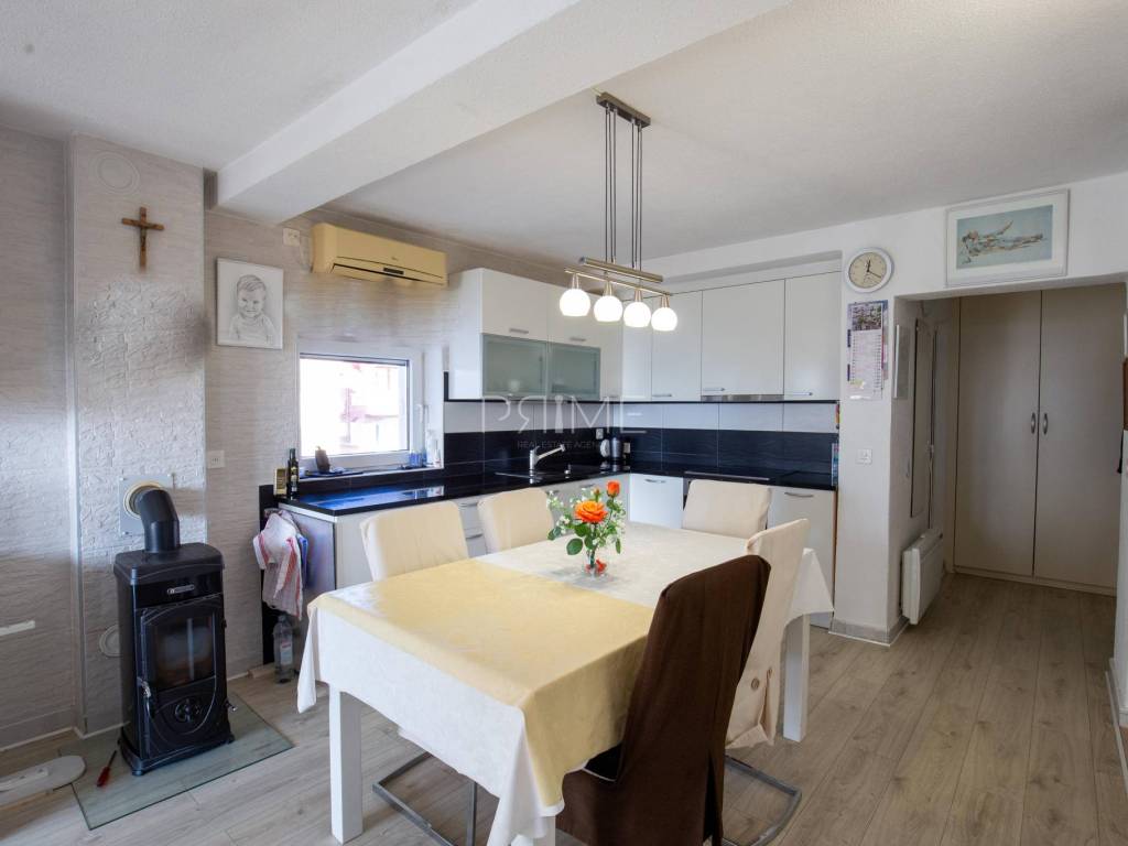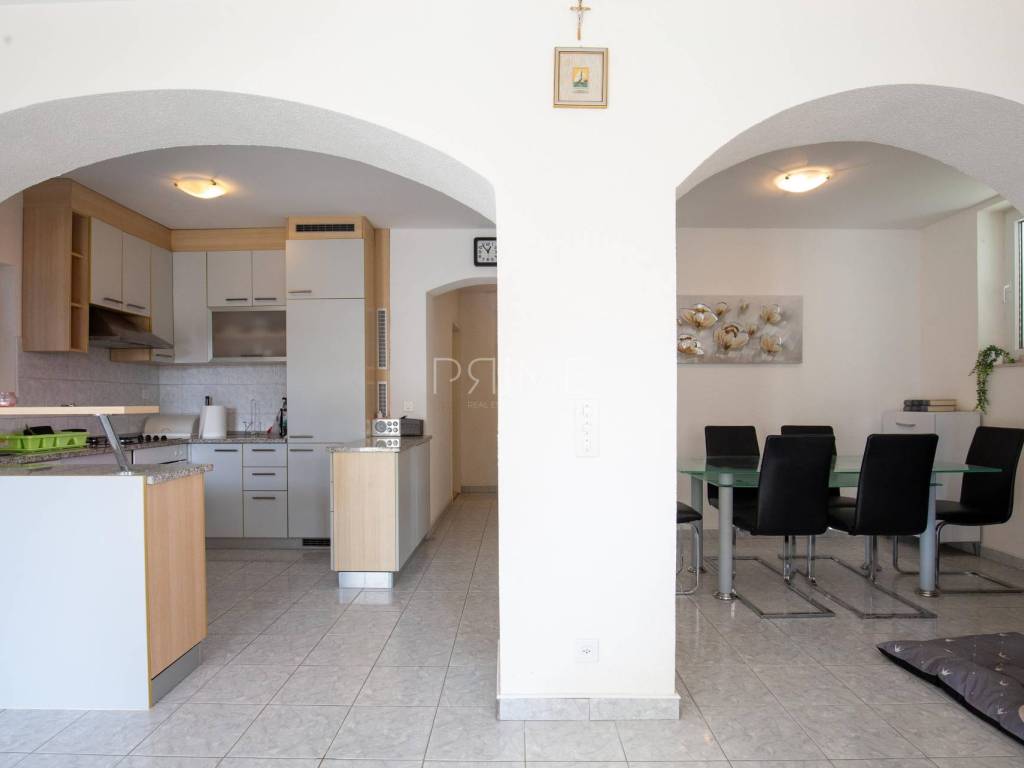 Oprema i kvaliteta gradnje: lift koji povezuje sve etaže, podno grijanje u cijeloj kući, klimatizacija u svim prostorijama, peći za grijanje u svakom stanu, solarni kolektori za toplu vodu, sustav za omekšavanje i pročišćavanje vode (zaštita od kamenca), kvalitetna PVC/ALU stolarija i rolete, uređena okućnica s mediteranskim biljem. Stanovi su etažirani, što omogućava jednostavno upravljanje, iznajmljivanje ili zasebnu prodaju u budućnosti.