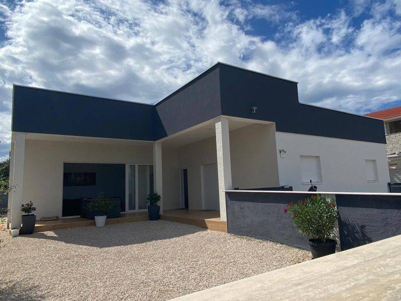 Vila - moderna prizemnica - sastoji se od dnevnog boravka sa kuhinjom, izdvojenog vešeraja, 3 spavaće sobe, 2 kupaone sa tuš kabinama i wc-om  i zaseban wc.