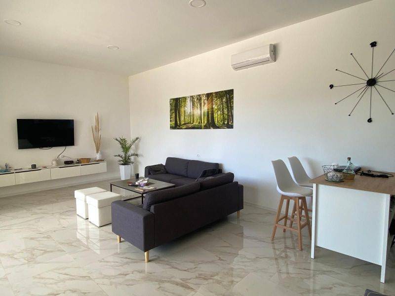 Kuća je opremljena sa 4 klima uređaja (u svakoj sobi), podovi su od keramike i mramora, vanjska terasa ima 187 m2, PVC stolarija i podno grijanje na struju.