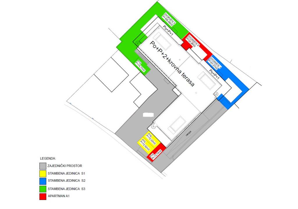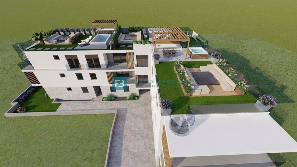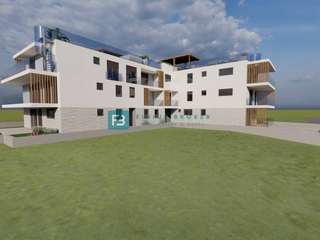 The construction of a modern residential building with a total of 12 apartments has begun. It consists of five floors: basement + ground floor + 1st floor + 2nd floor + roof terrace. Each floor has 4 apartments. The building is being built with quality materials according to the latest construction standards and will be equipped with: polystyrene facade, security entrance door, PVC anthracite joinery, high-quality ceramic floor coverings, electric underfloor heating in the bathrooms, modern bathroom fixtures, air conditioning in every room, electric roller shutters, mosquito nets throughout the apartment, glass railings on the terraces, TV/Internet connection in the rooms and living room. Garage spaces are located in the basement of the building. The building has a connection to the city sewerage and an asphalted access road. The planned completion date and move-in date is summer 2026.