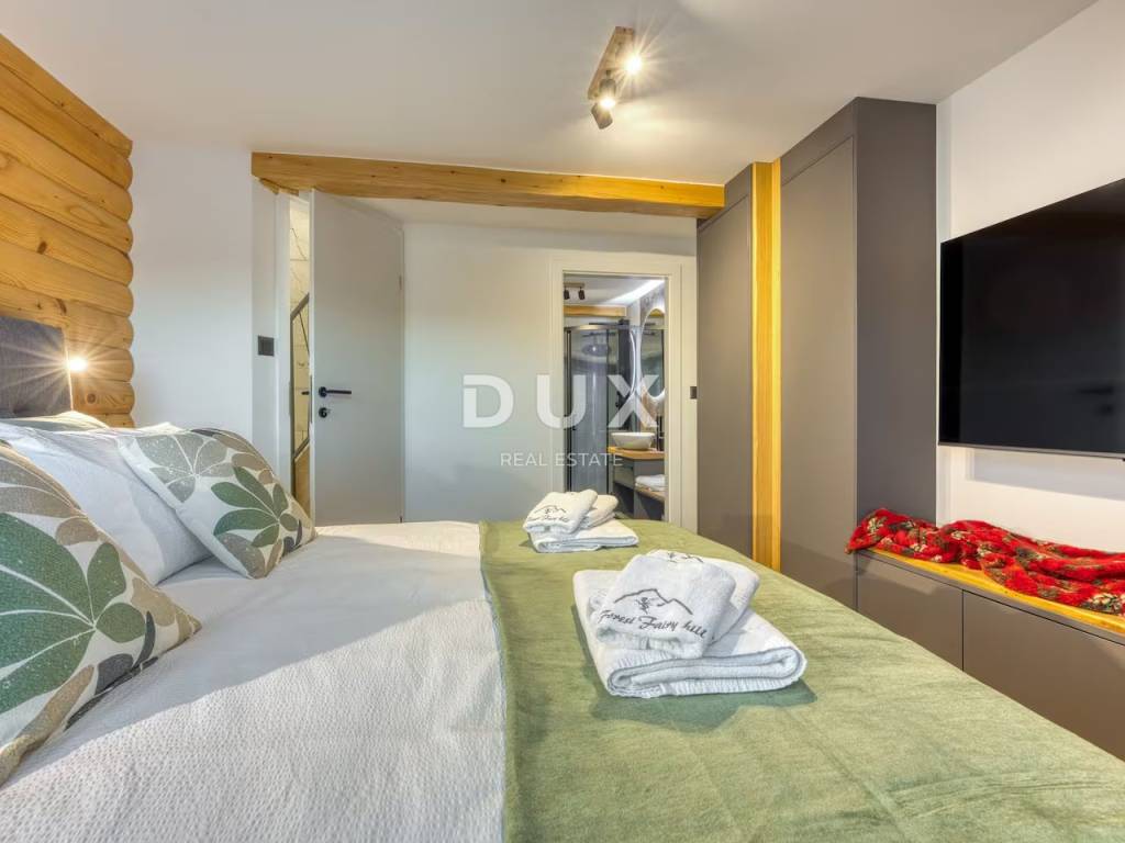 In the green heart of Gorski Kotar, surrounded by fresh mountain air, there is a completely renovated and modernly designed house that combines comfort and nature into a harmonious whole. It is located in Fužine, just a few minutes from the town center, and yet secluded enough to provide peace and an open view of the lake and forest.