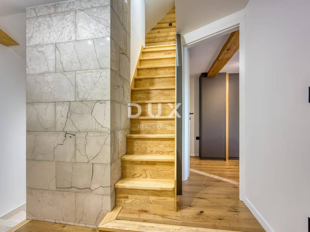 On the upper floors are spacious bedrooms with private bathrooms, while in the attic there is an additional room with separate beds and a separate toilet. The layout allows for privacy, but also a sense of connection to the entire home. Two terraces further expand the living space towards nature, and a parking space and a garage measuring approximately 4 x 3.5 meters complete the functionality. Additional parking is available right across the street.