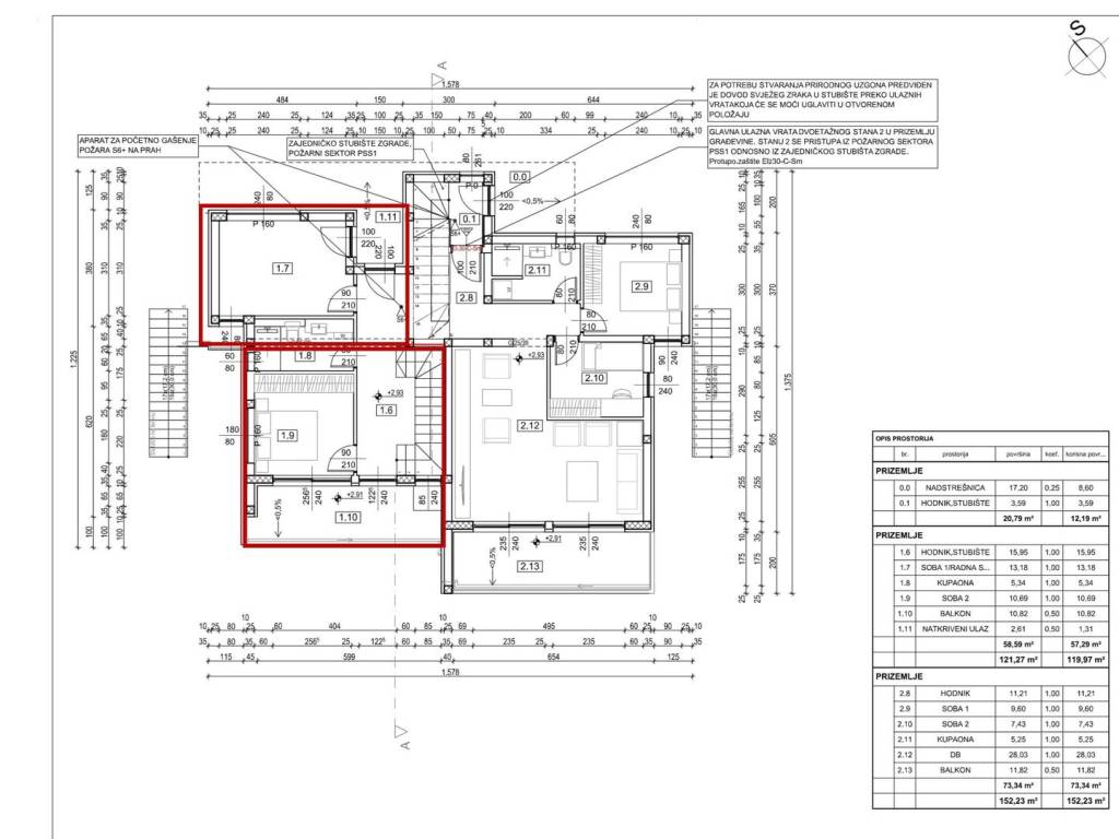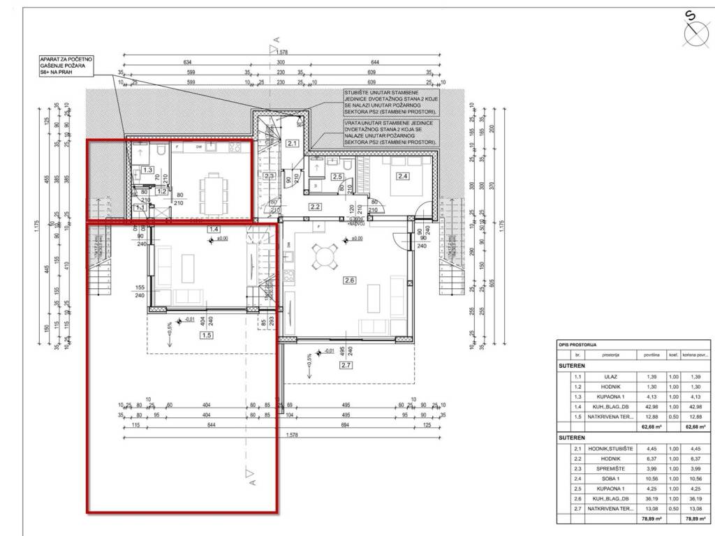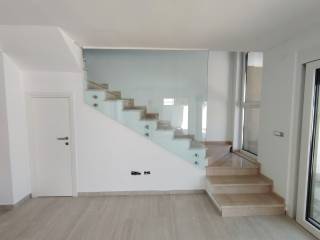 Oprema: Zidana konstrukcija opeka (blok 25) sa armiranobetonskim serklažama,, ovojnica 10 cm EPS i XPS izolacije, vrhunski fasadni sustav STO, Gealan pvc vanjska stolarija, HST podizno klizne stijene, podno grijanje, multi-split klima.