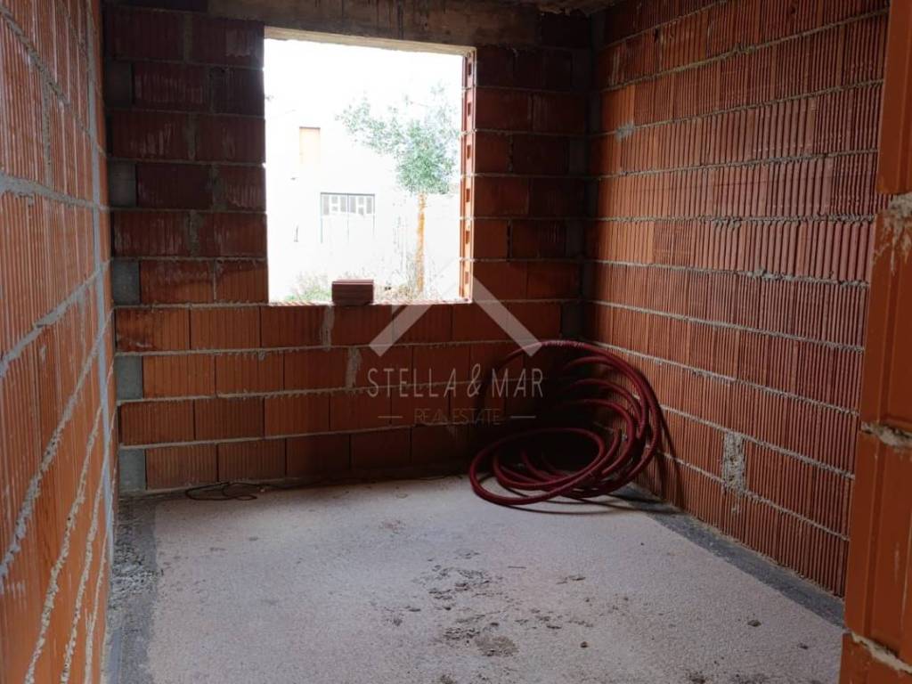 It is located on a plot of 383m2. The single-storey house is being sold in its current condition. It has a valid building permit with paid utility and water contributions. contributions.