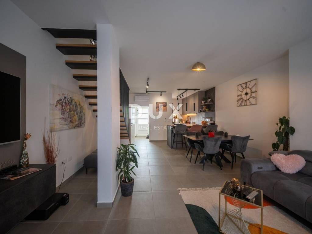 In one of the most desirable parts of Novigrad, just 2 kilometers from the sea and well-maintained beaches, is this modern terraced house that perfectly combines contemporary design, functionality and the Mediterranean way of life. It is located in a quiet environment, ideal for family life, but also as an excellent investment for tourist rental.
