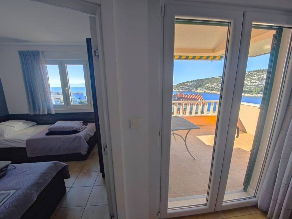 We offer for sale an attractive apartment house in excellent condition, located on an elevated position with an open, panoramic view of the sea and the bay. The property is located only 70 meters from the sea and a well-maintained beach with a boat mooring, which makes it ideal for both tourist rental and personal use.