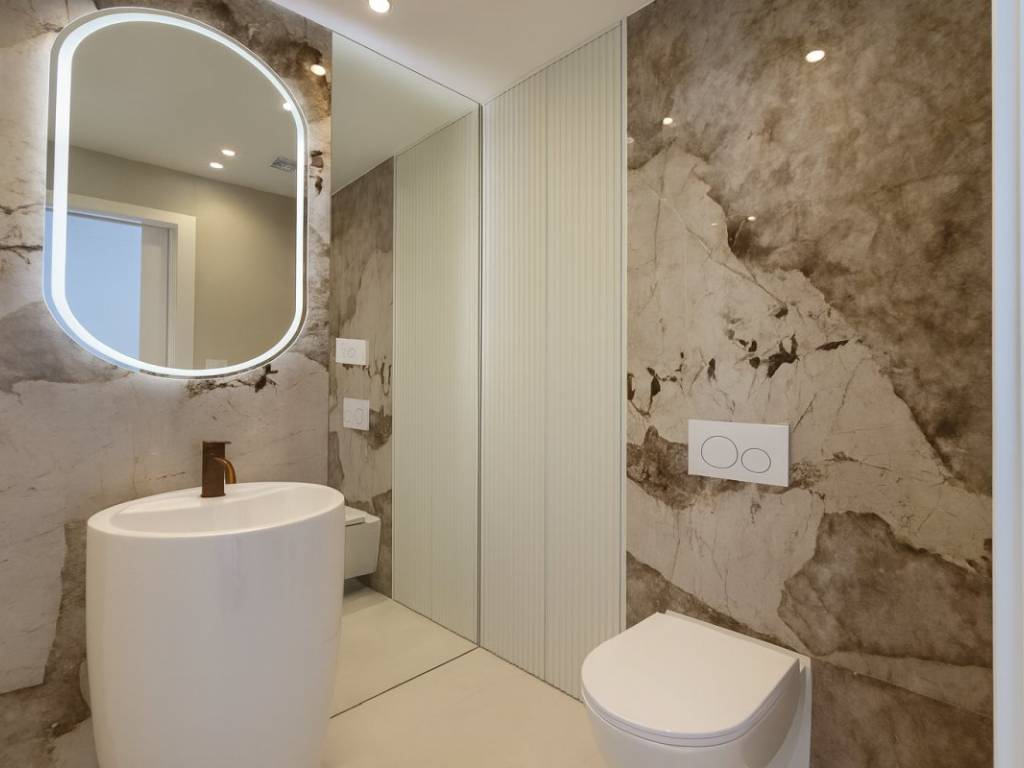 The apartment consists of four bright and comfortable rooms, two modern bathrooms, and an open kitchen connected to the dining room and a spacious living room, which leads to a covered terrace with an uninterrupted panoramic view of the sea. The roof terrace provides additional space for relaxing, enjoying the sun, organizing social gatherings or creating a private outdoor oasis.
