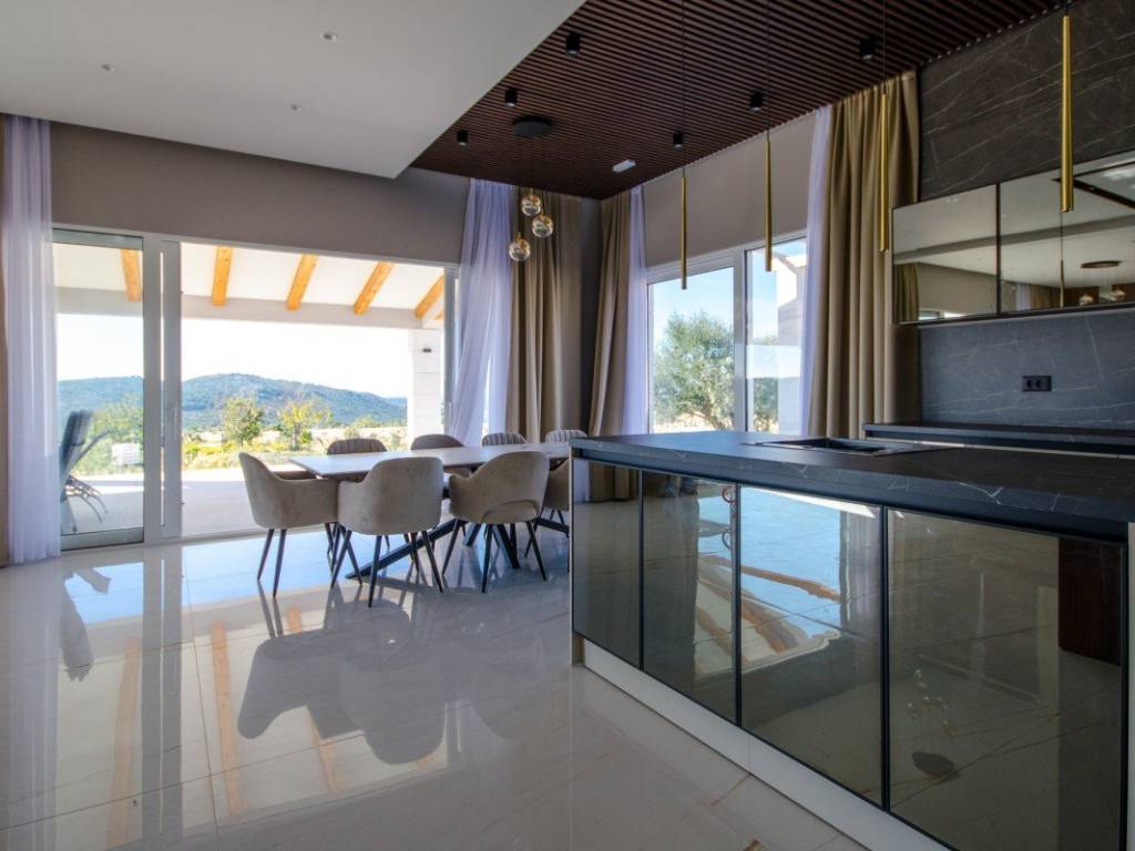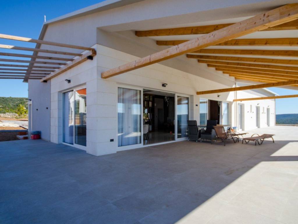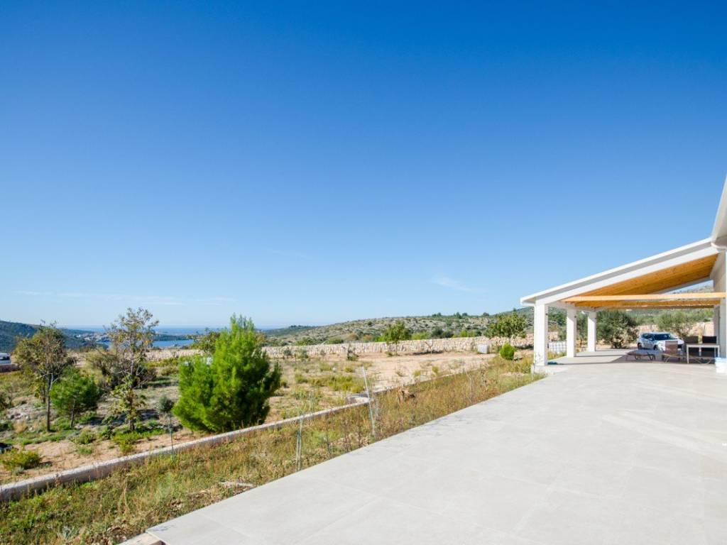 In a quiet location near Rogoznica, surrounded by greenery and untouched nature, this modern villa with open sea views and complete privacy is located.