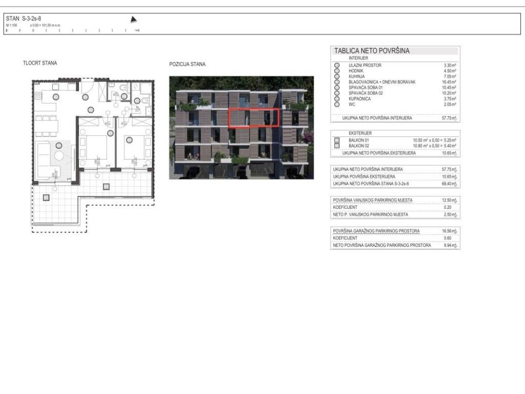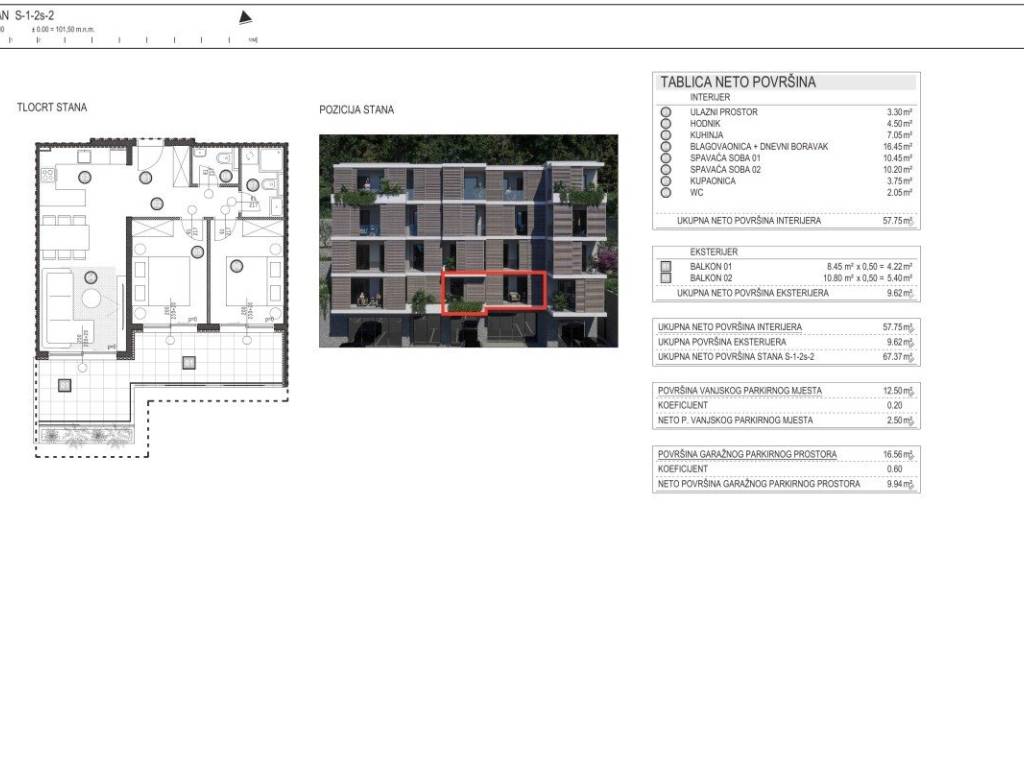 This southwest-facing two-bedroom apartment consists of an entrance hall and corridor, a spacious living room with dining area, a kitchen, two bedrooms, a bathroom, a separate toilet, and two balconies. The net indoor living area is 57.75 m, providing a functional and comfortable living space. The apartments feature two spacious balconies of 10.50 m each, offering plenty of space to enjoy stunning sea views.