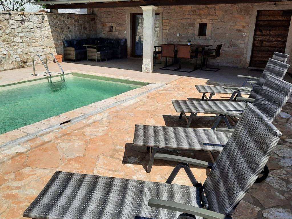 The plot of land of approximately 200 m includes a swimming pool, several parking spaces and a fireplace for barbecues. The house is air-conditioned and has electricity, water and sewage connections. The price also includes agricultural land of approximately 720 m, located about 50 m from the house, suitable for a garden, olive grove or other facilities.