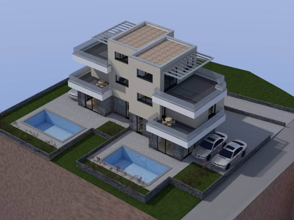 In a small village near Šibenik, semi-detached houses with swimming pools are for sale.