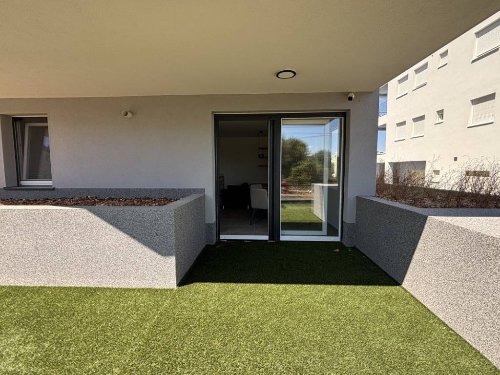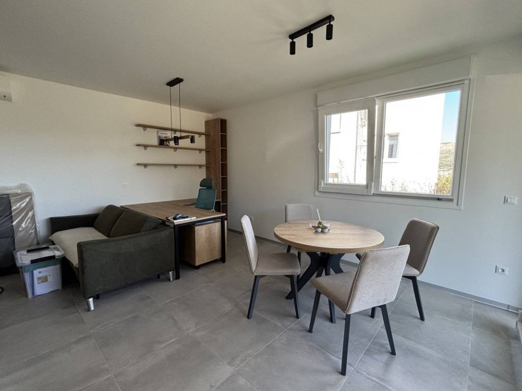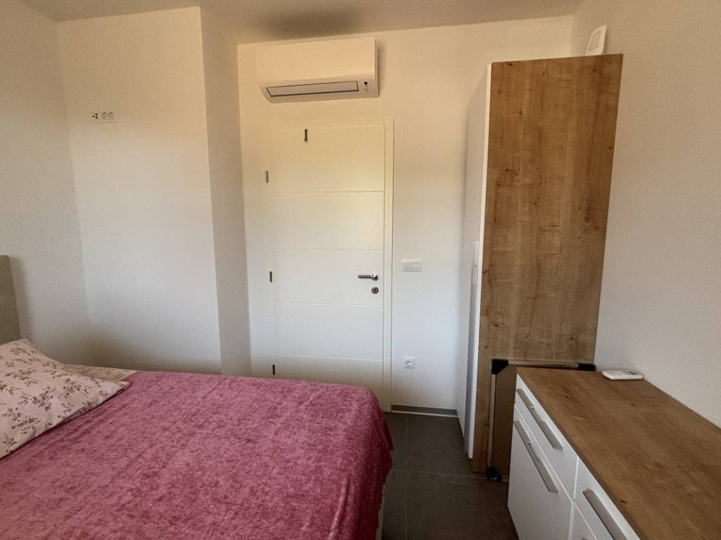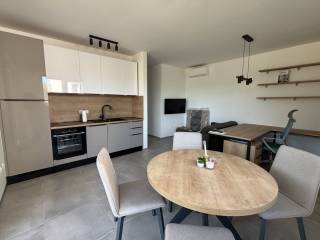 The apartment is oriented to the northeast, which allows for a pleasant amount of daylight without excessive heating of the space in the summer. It consists of a hallway, a comfortable and functional bedroom, a bathroom with modern sanitary facilities and a kitchen with a dining room and a living room from which direct access to the garden is provided. Heating and cooling of the apartment is carried out via underfloor heating that covers the entire space, providing a comfortable temperature throughout the year and via two air conditioners that enable fast and efficient cooling or heating. Additional equipment includes electric roller shutters, mosquito nets that ensure unhindered ventilation, security doors that provide additional home security, as well as other quality finishes that complete the feeling of modern living.