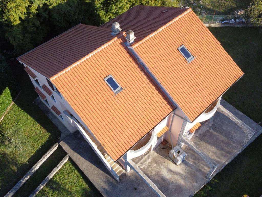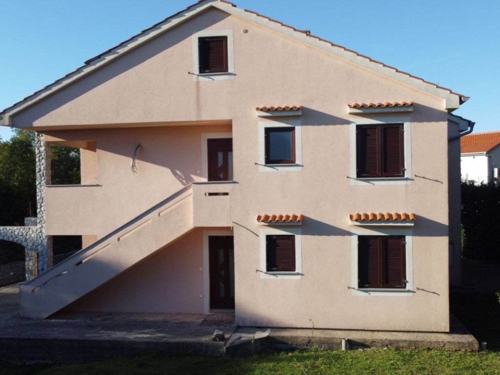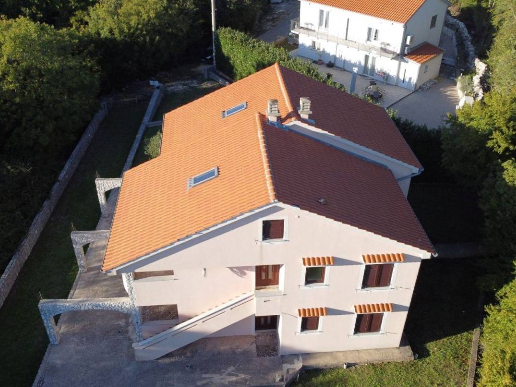 In a quiet and green location in the municipality of Dobrinj, a detached house with four apartments and an additional unfinished attic is for sale, located on a spacious plot of about 1,150 m (350 m of the buildings floor area + approximately 800 m of garden). The house is located at the end of a dead-end street, which additionally ensures peace, privacy and security.