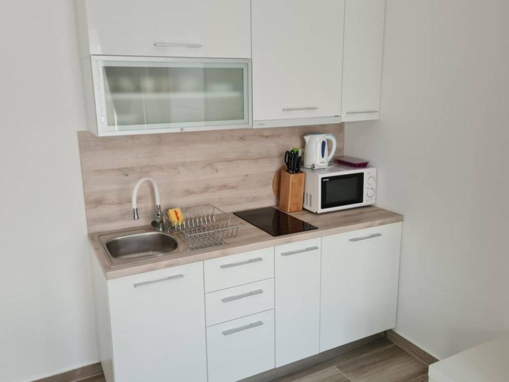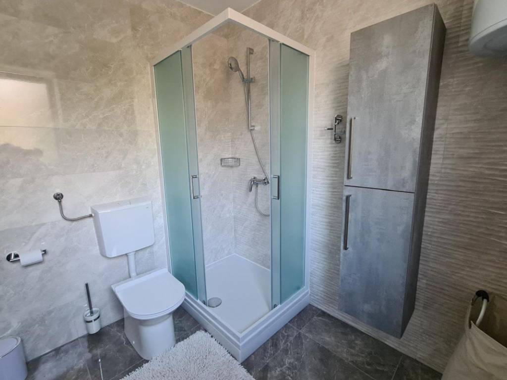 Layout: In the basement there is a 2S apartment with a hallway, bathroom, living room, kitchen and dining room with access to a large terrace. On the ground floor there are two studio apartments with terraces. On the first floor there is a large apartment: hallway, two bathrooms, four bedrooms, kitchen and dining room, living room with access to a large terrace with a beautiful sea view. The apartment can be divided into two residential units.