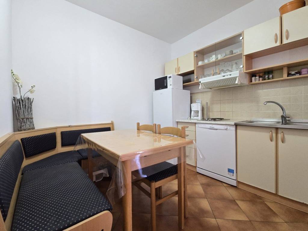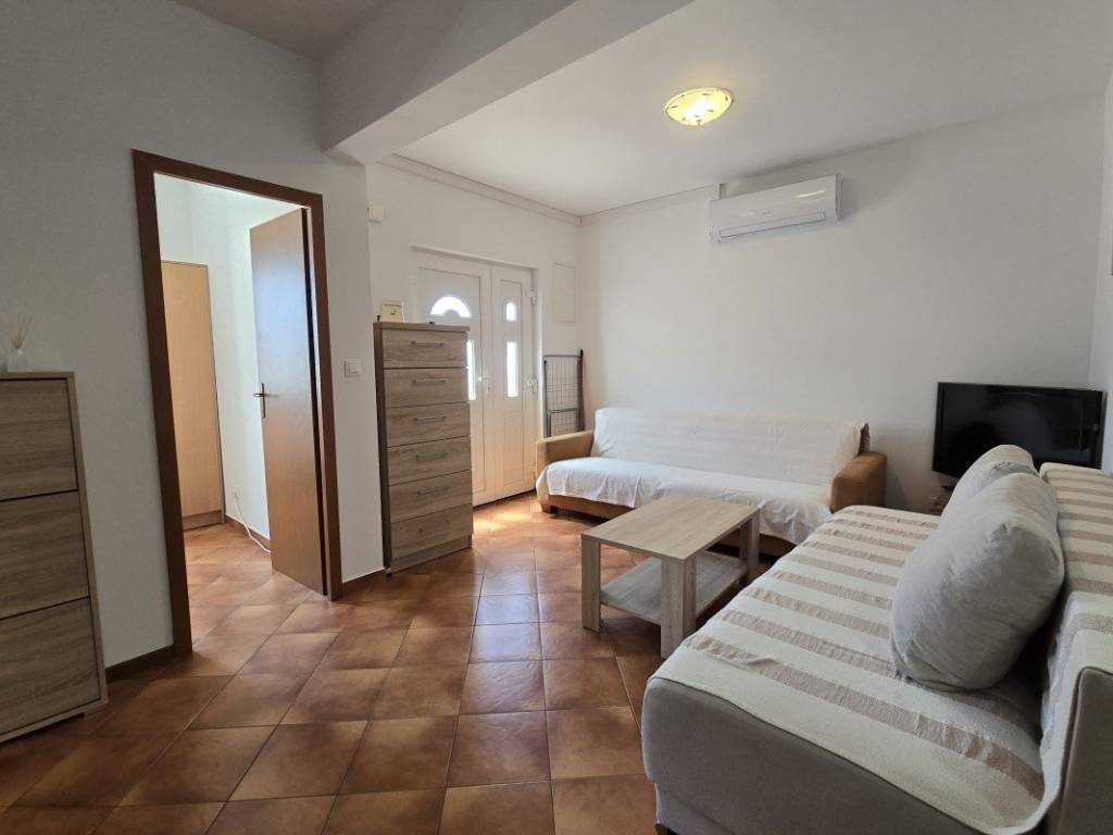 In a small tourist town on the Omiš Riviera, known for its clear sea and beautiful beaches, a charming two-bedroom apartment with sea view is for sale. With a living area of 41 m2, the apartment is located on the ground floor of a multi-storey building.