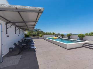 In front of the property, there is private parking for three vehicles, and on the other side of the villa, there is a heated saltwater pool with a view of the islands and olive groves, a garden with a childrens playground and sunbeds, quality garden furniture with a barbecue, and a modernly designed outdoor kitchen.