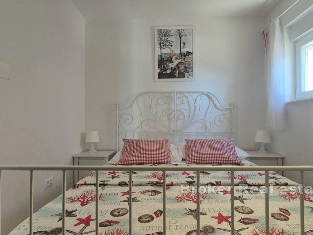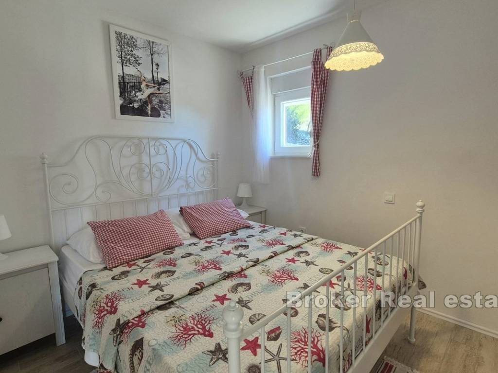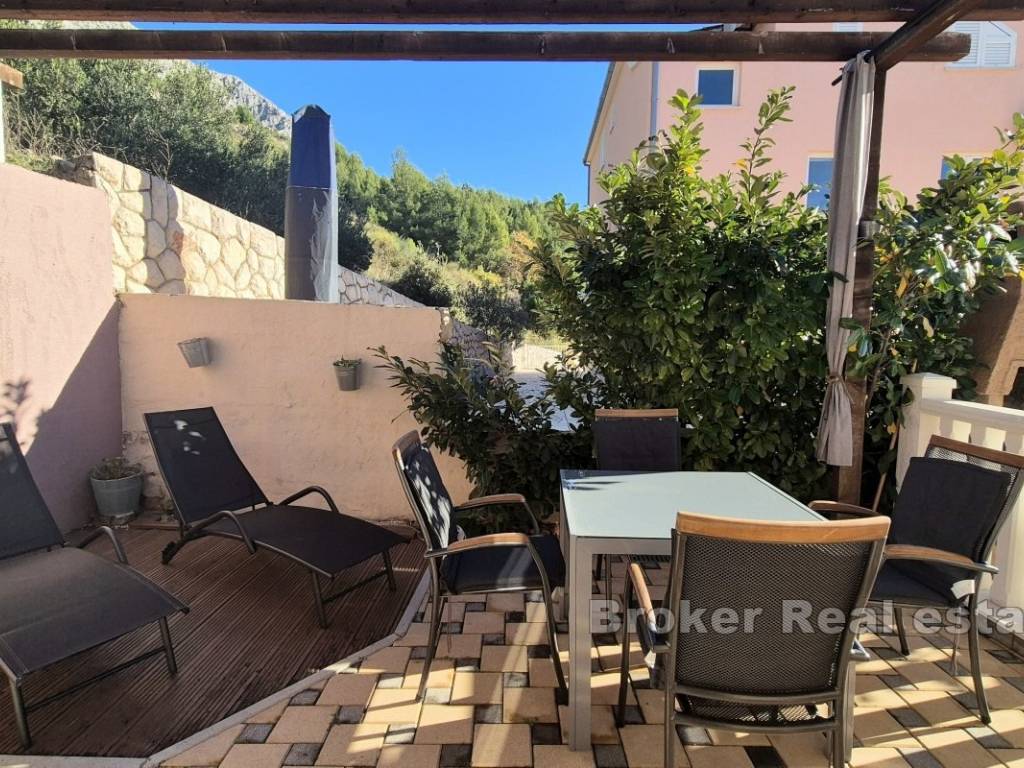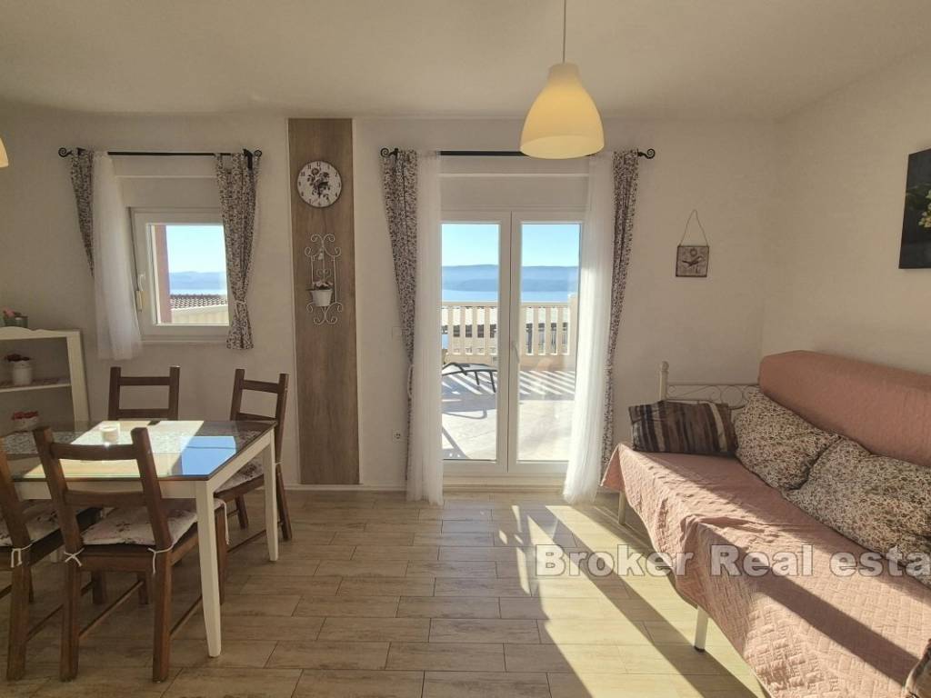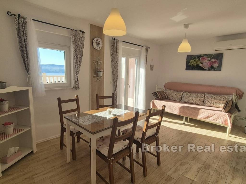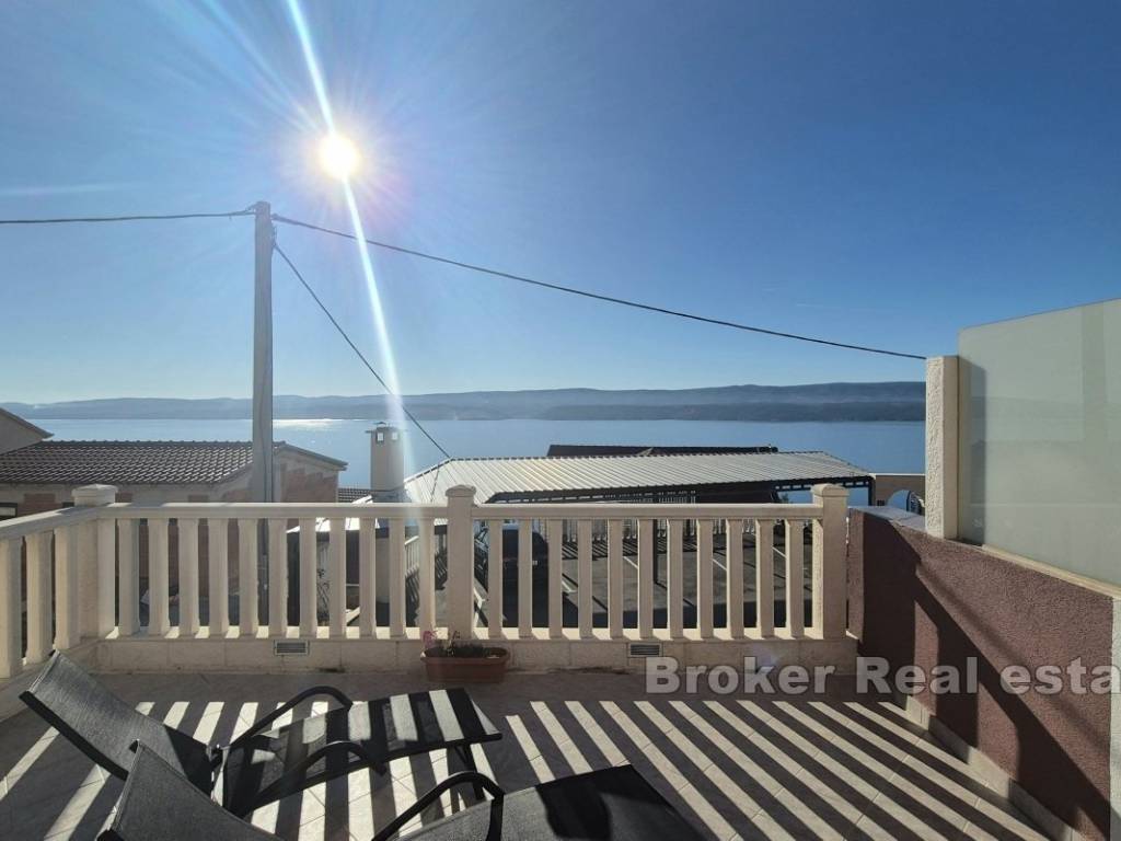 A semi-detached house with a sea view is for sale, located in a peaceful environment, ideal for relaxation. It is only 250 meters by air from the beach and the sea, while the center of Omiš is five kilometers away.