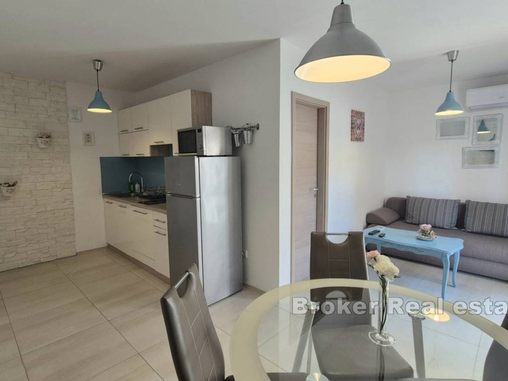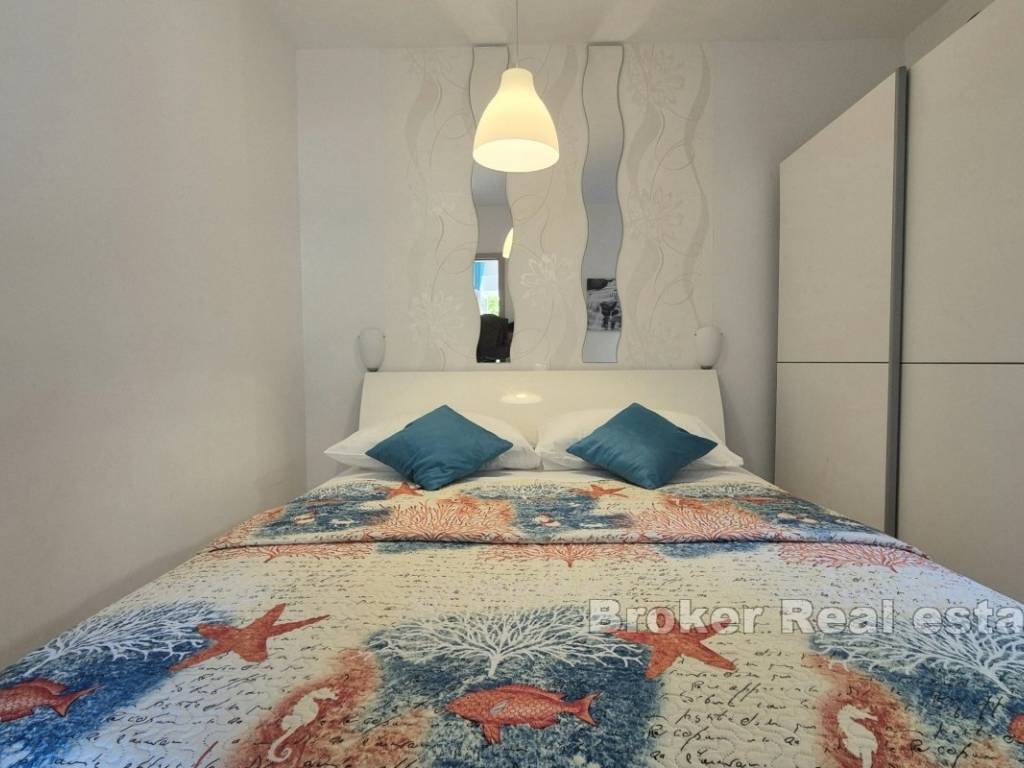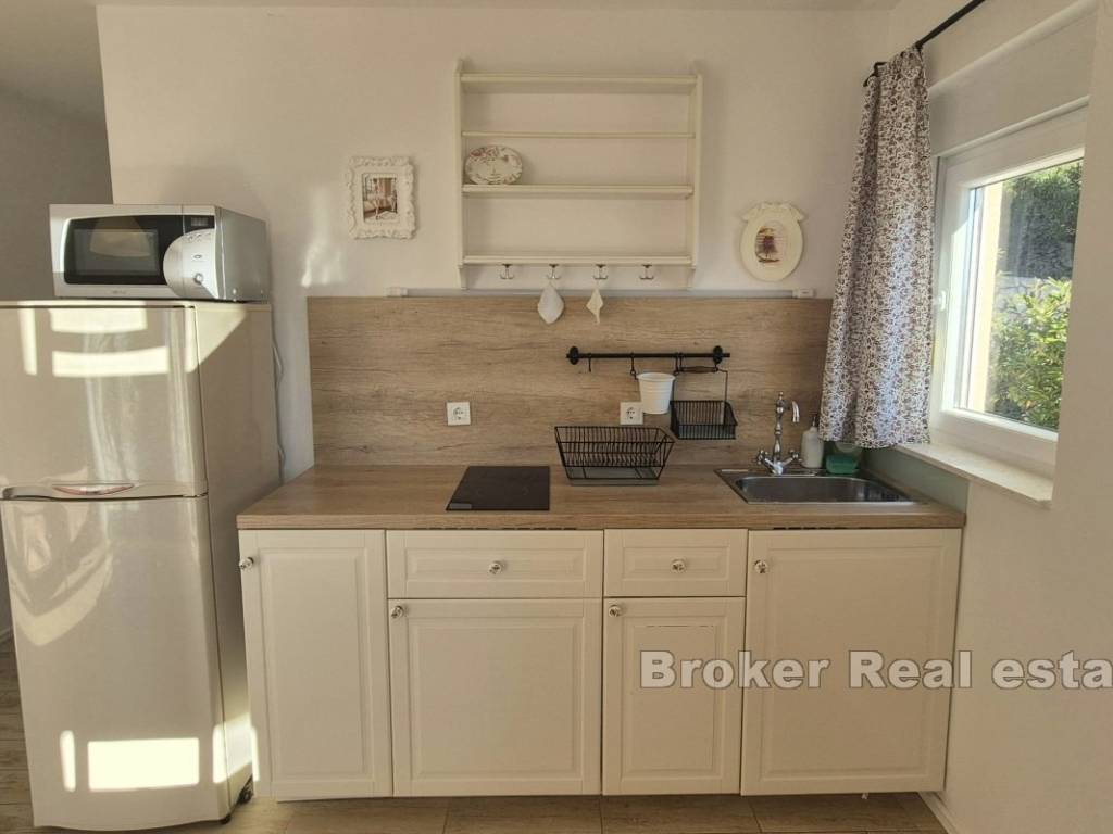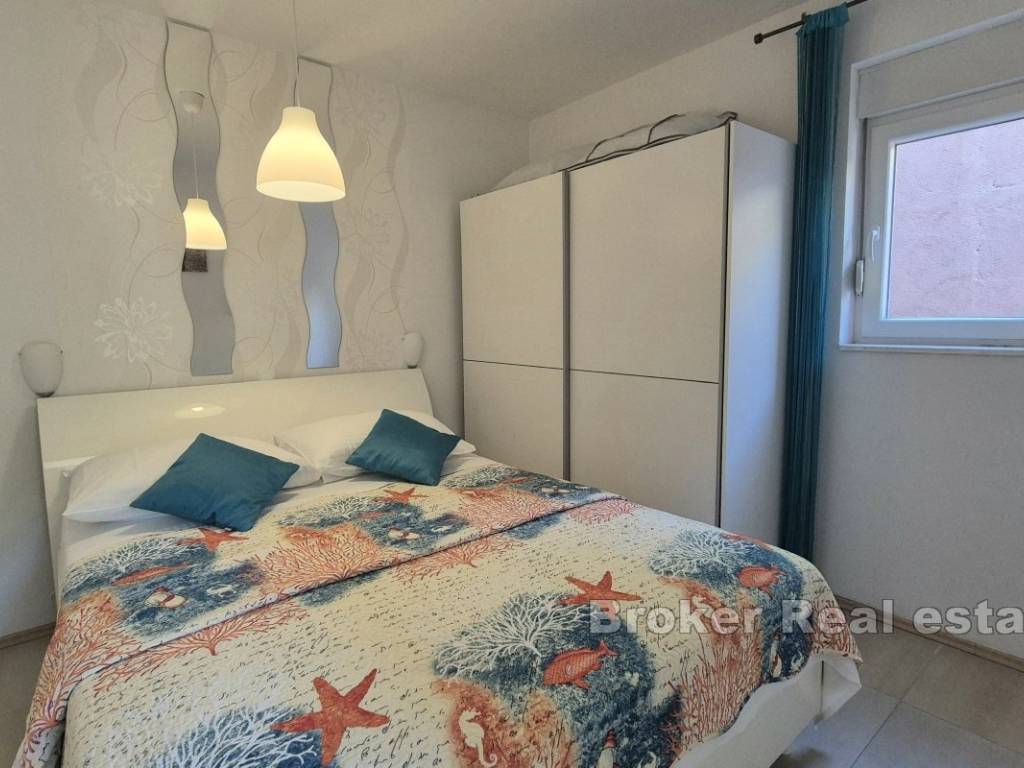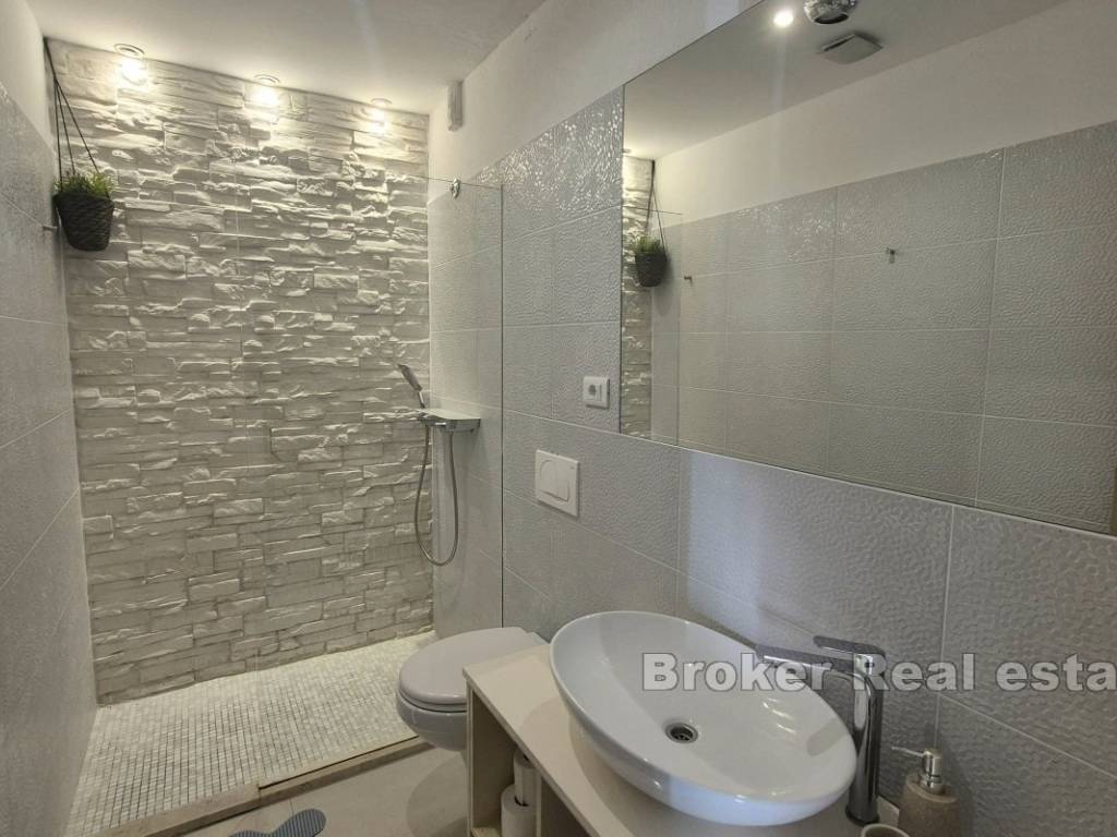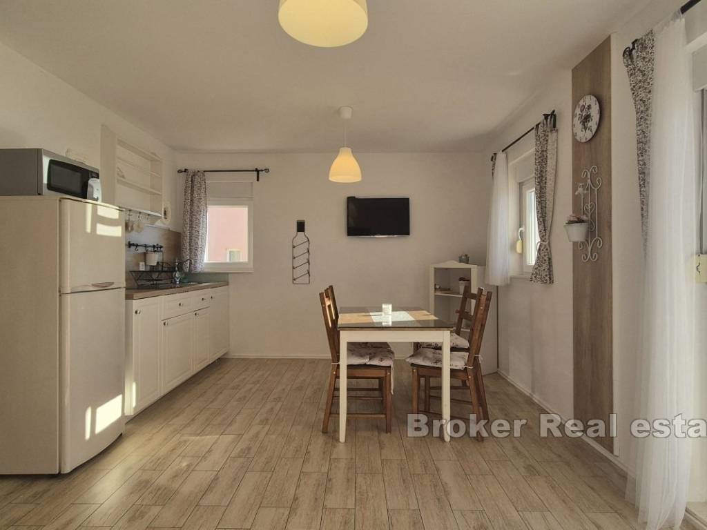 A semi-detached house with a sea view is for sale, located in a peaceful environment, ideal for relaxation. It is only 250 meters by air from the beach and the sea, while the center of Omiš is five kilometers away.