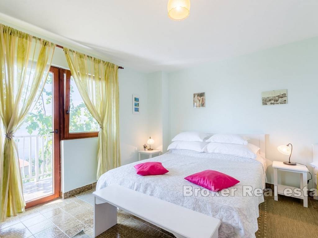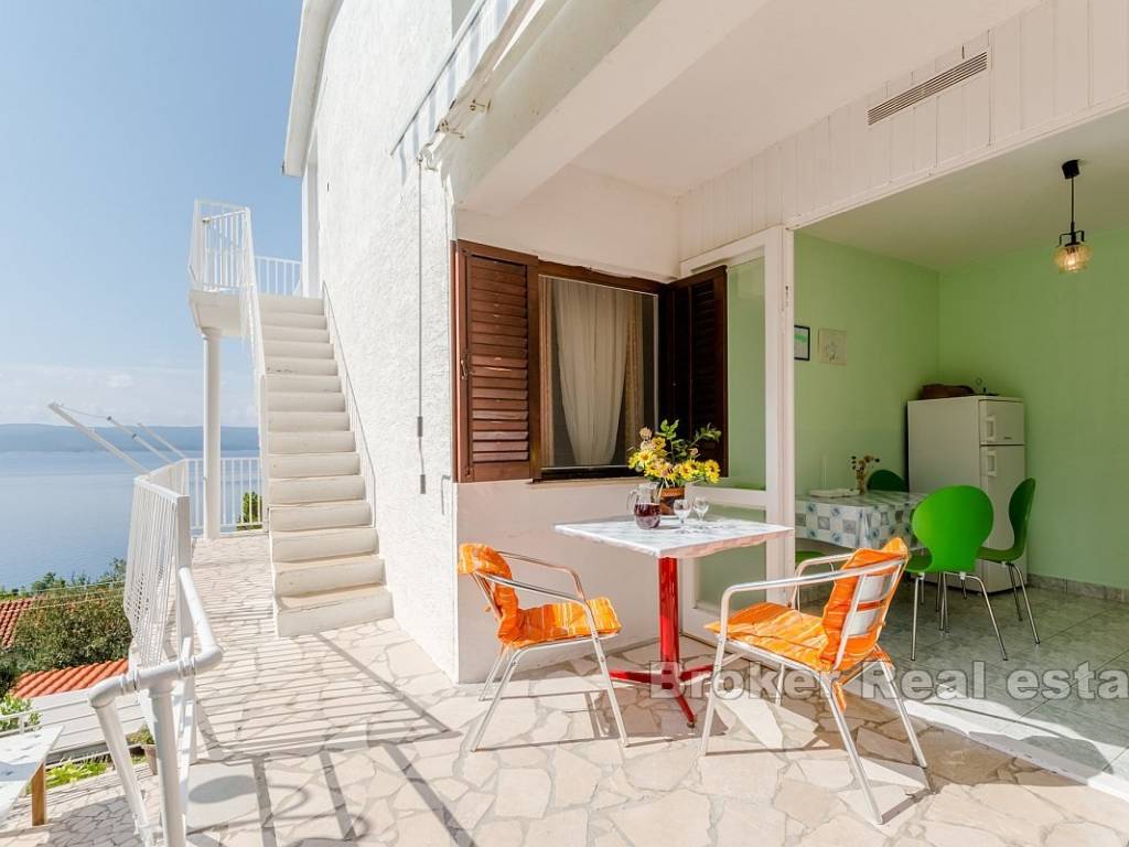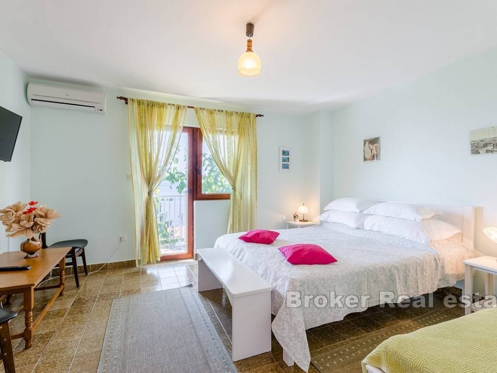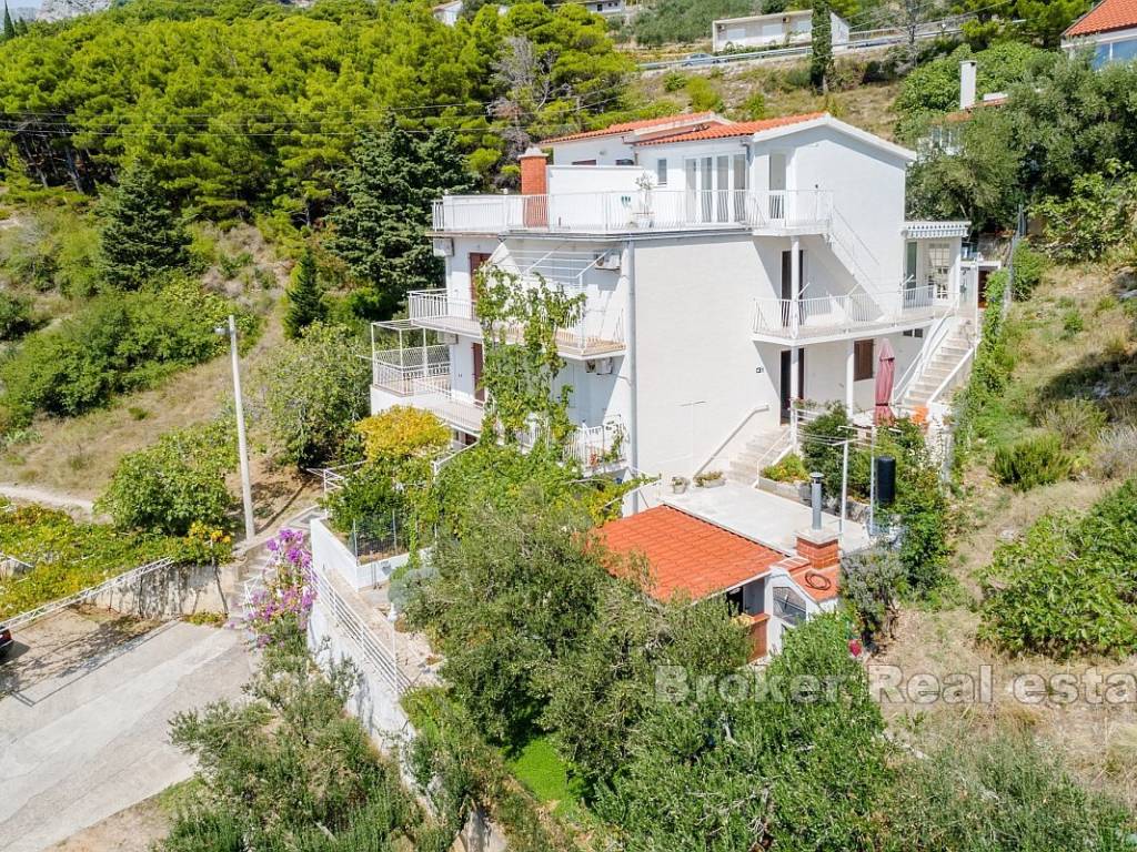 Each floor has a balcony with a beautiful sea view, allowing guests to relax while enjoying the panorama of the Adriatic. The property includes a yard of 168 m, and the building generates a stable income during the summer season. Located in a peaceful area, the house is ideal for relaxation, and in the vicinity, there are a supermarket, restaurant, and beach, while the center of Omiš is just 8 km away.