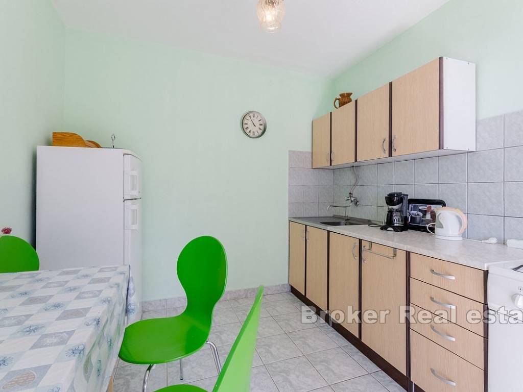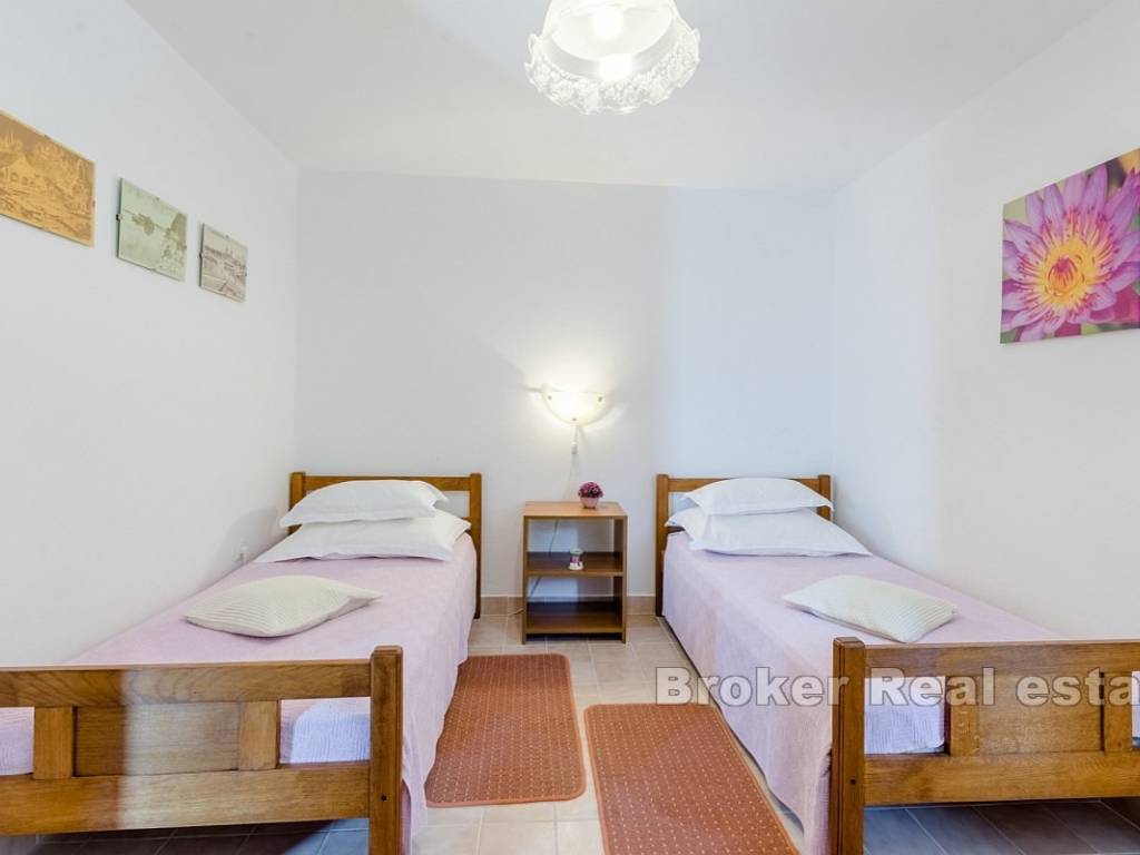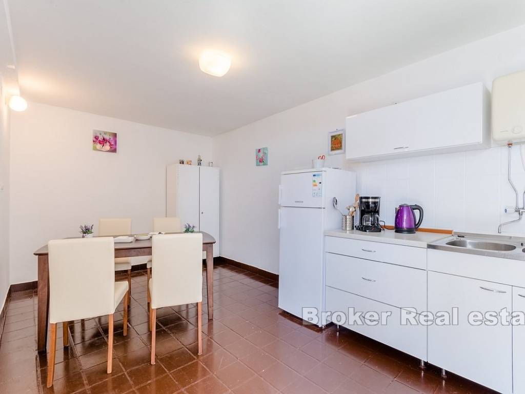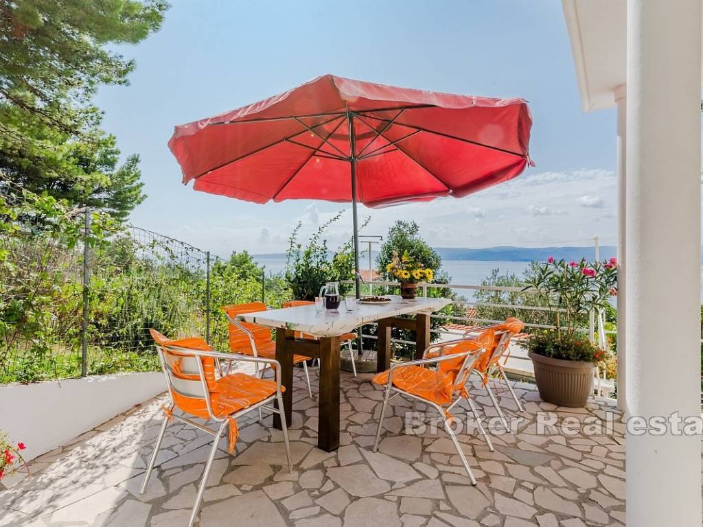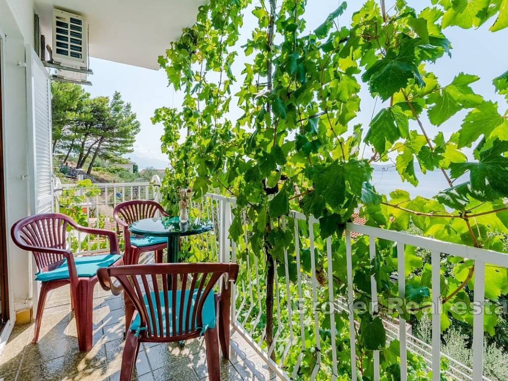 Each floor has a balcony with a beautiful sea view, allowing guests to relax while enjoying the panorama of the Adriatic. The property includes a yard of 168 m, and the building generates a stable income during the summer season. Located in a peaceful area, the house is ideal for relaxation, and in the vicinity, there are a supermarket, restaurant, and beach, while the center of Omiš is just 8 km away.