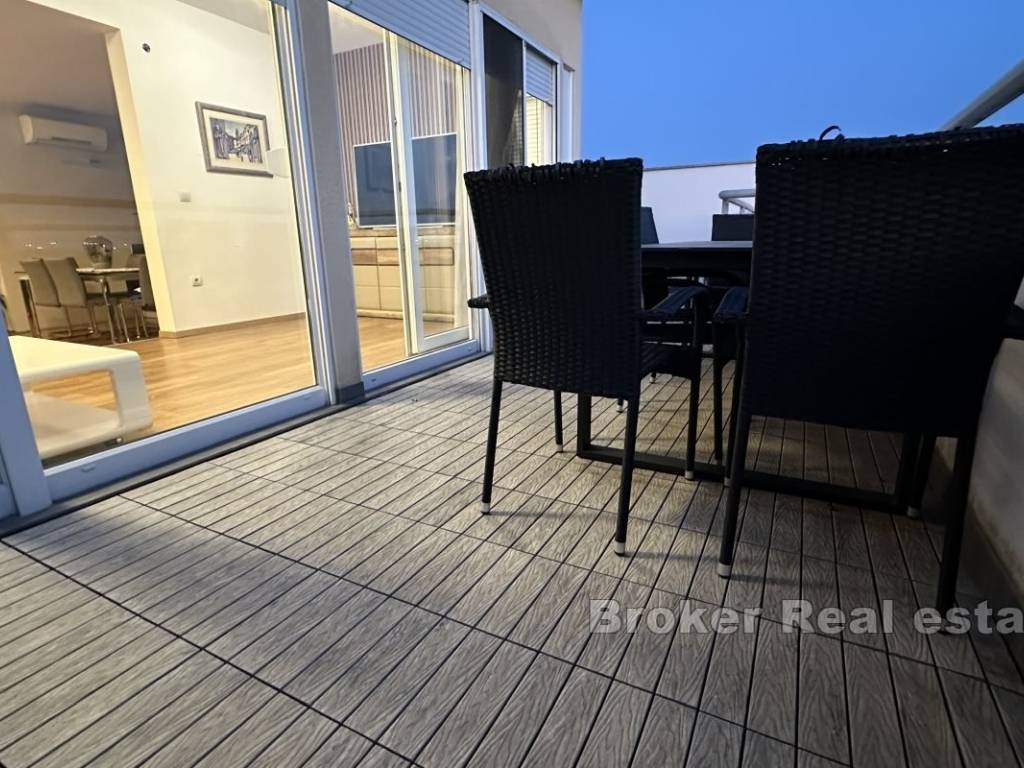 A two-bedroom apartment is for sale in a highly desirable and busy location near the Mall of Split. Situated on the top floor of a residential building with an elevator, it offers 76 m of living space.
