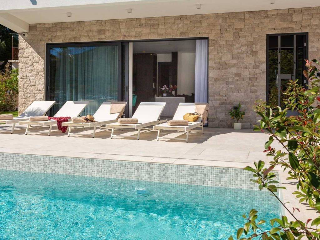 The villa consists of 4 bedrooms, each with its own bathroom and loggia, one of which is on the ground floor, and the remaining three on the first floor.