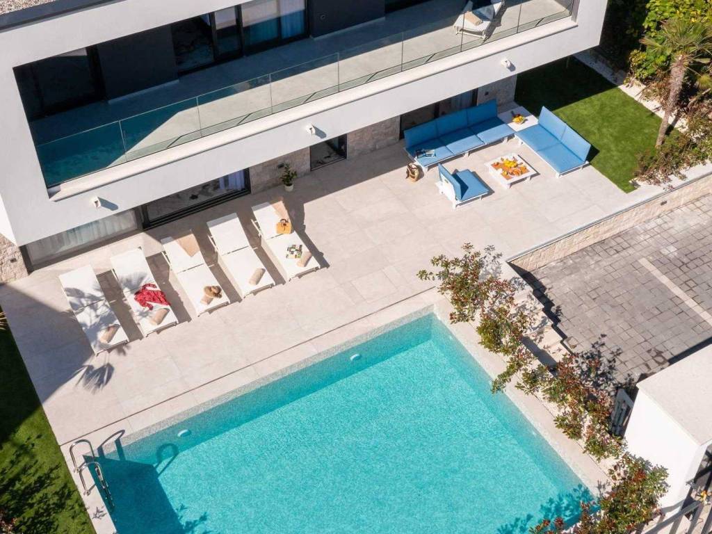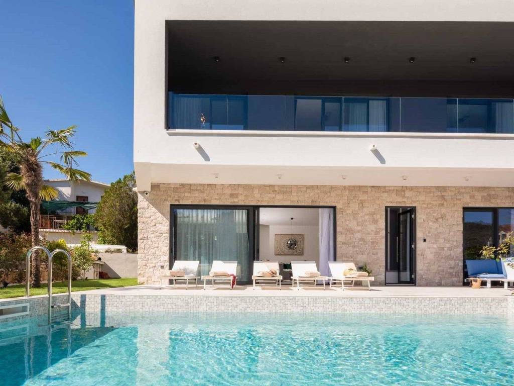 Newly built modern villa with pool in the first row to the sea